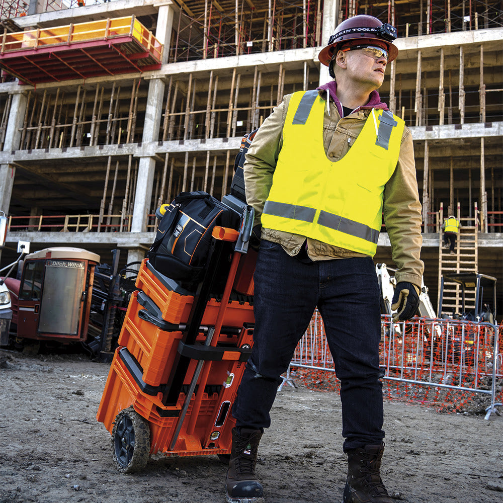 Klein's Tool Bag features 28 pockets for plenty of tool storage, internal headlamp bracket to light up the interior of the bag. Built-in technology to seamlessly connect to Klein's MODbox™ Mobile Workstation and other MODbox™ components to make a custom mobile workstation.