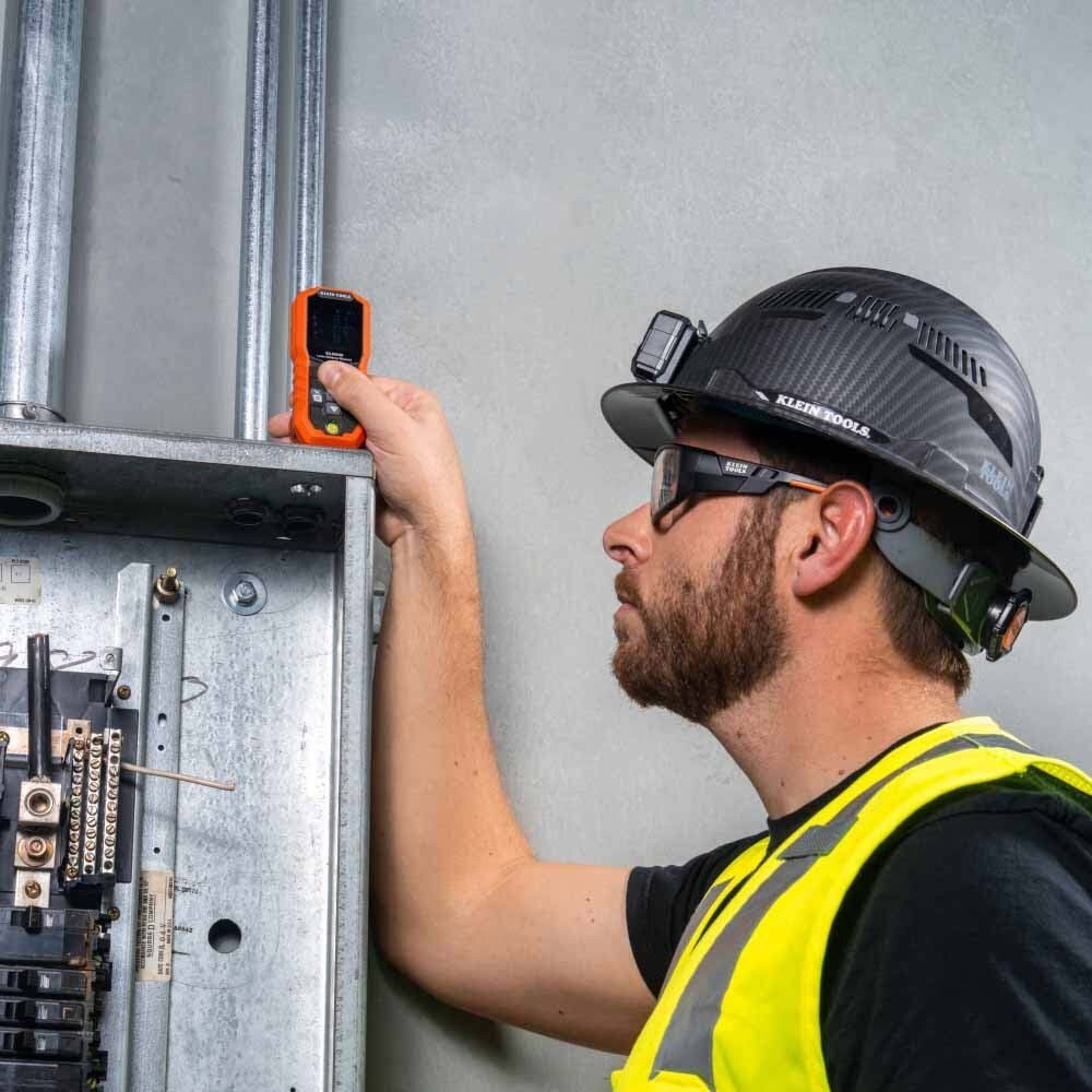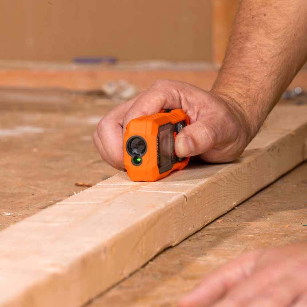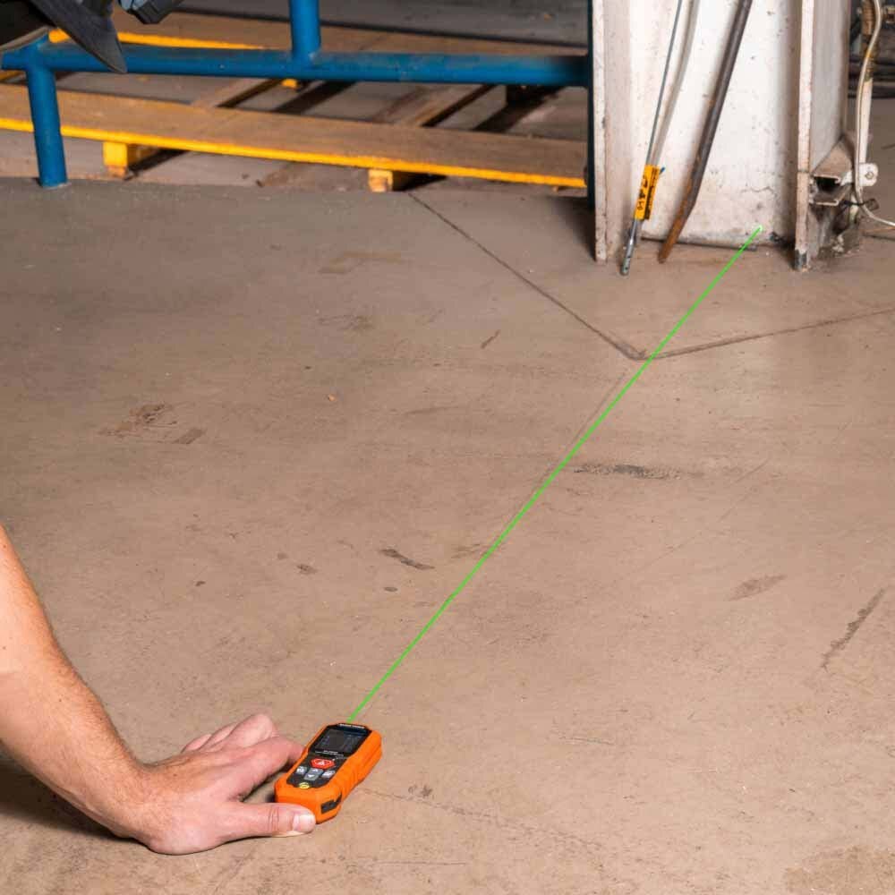Klein Tool's Laser Distance Measure is a rechargeable laser distance measure that provides fast and accurate measurements up to 200 feet. It features real time measuring, adding and subtracting measurements, square footage, rectangular perimeter calculations, volume, and indirect measurement calculations to help speed up the measuring and estimating work of professionals. The rechargeable battery is powered via a USB-C port and is convenient to recharge anywhere on or off the job. Durability is ensured by the protective hard case, its IP54 dust and water rating, and a 6.6-Foot (2 m) drop rating. The bright, backlit screen is easy to see outside and inside and makes measuring on early job sites easier. The green laser is up to 2 times easier to see than red lasers in different lighting conditions.