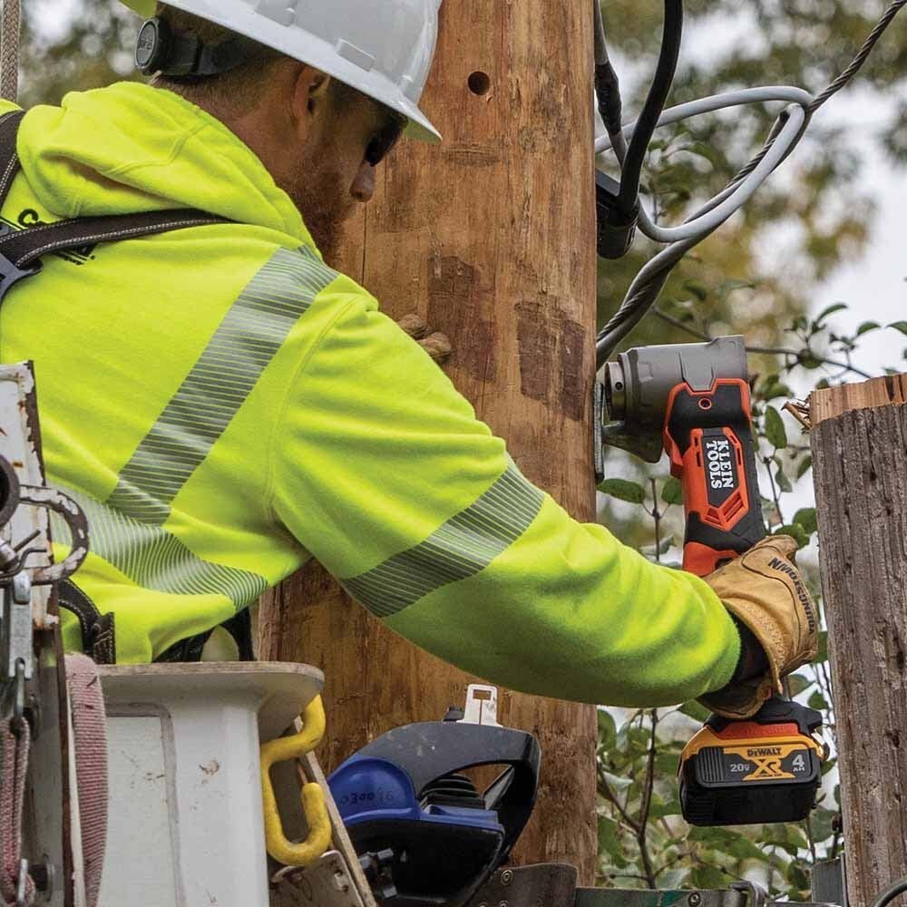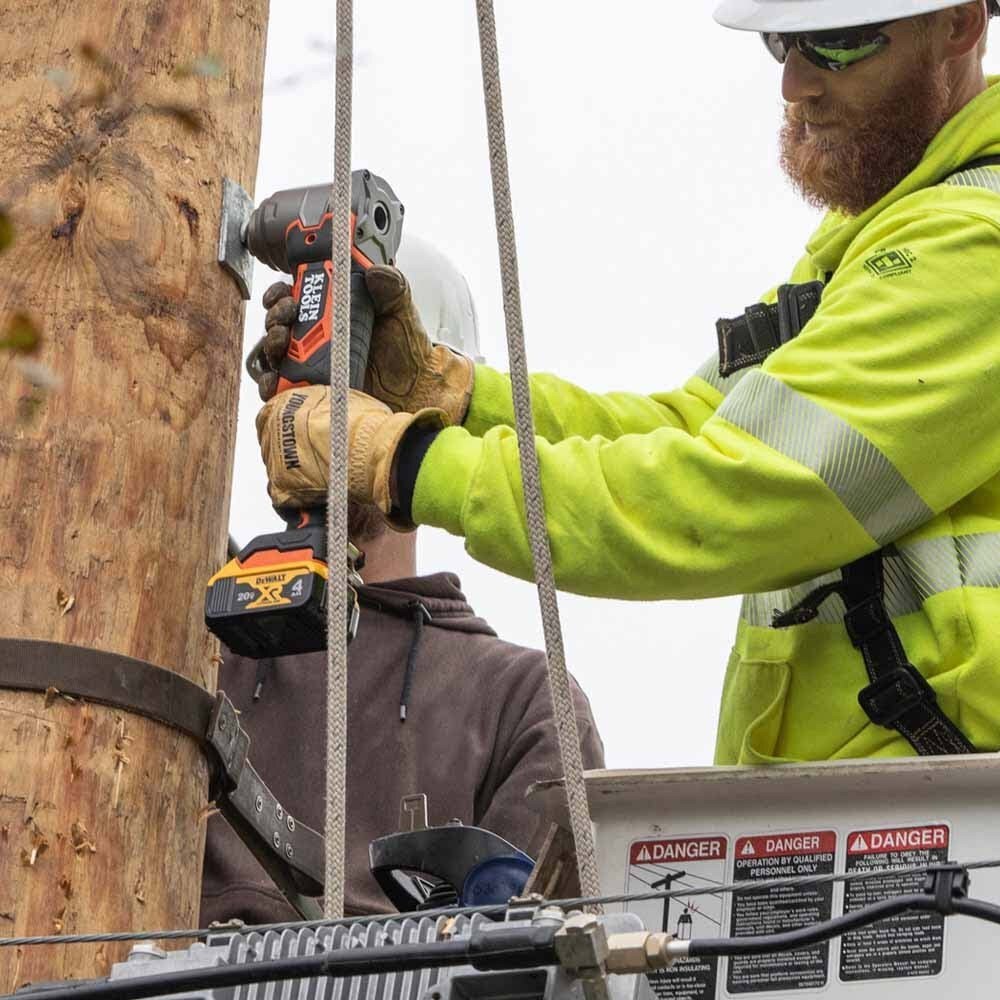 • Impact Wrench's right angle provides versatility for better reach around a utility pole with less effort