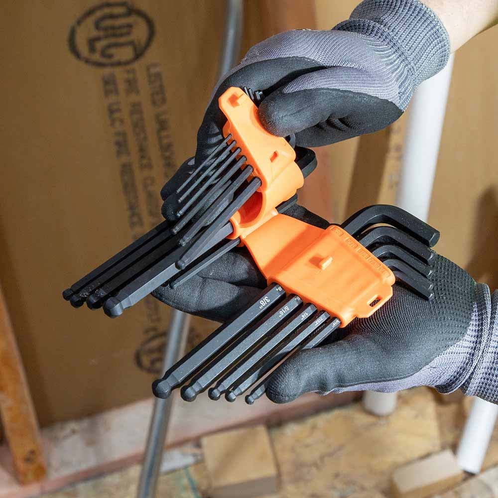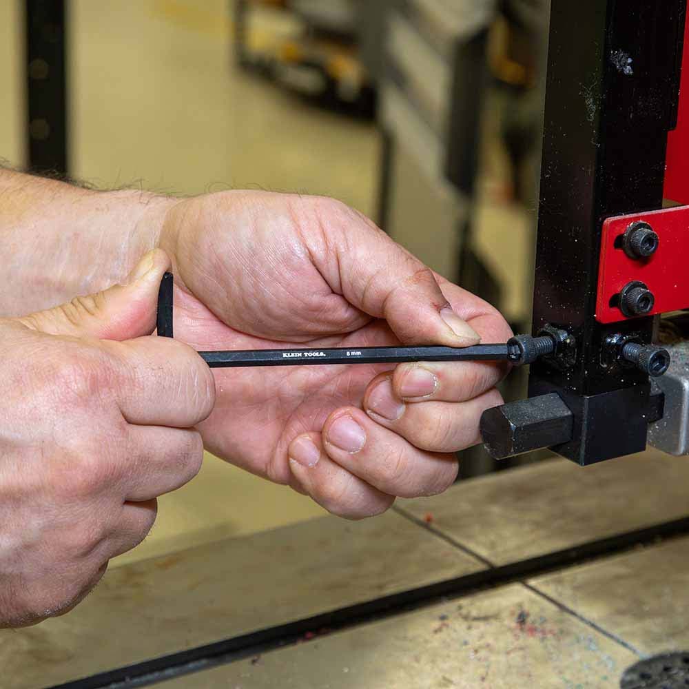 Klein Tools' 10-Key Ball-End Hex Key Set conveniently consolidates the most popular metric sizes into one compact case. The industrial strength, extended reach ball-end keys are optimal for working at angles up to 25 degrees. The secure storage case features an internal locking mechanism to prevent loss of keys.
