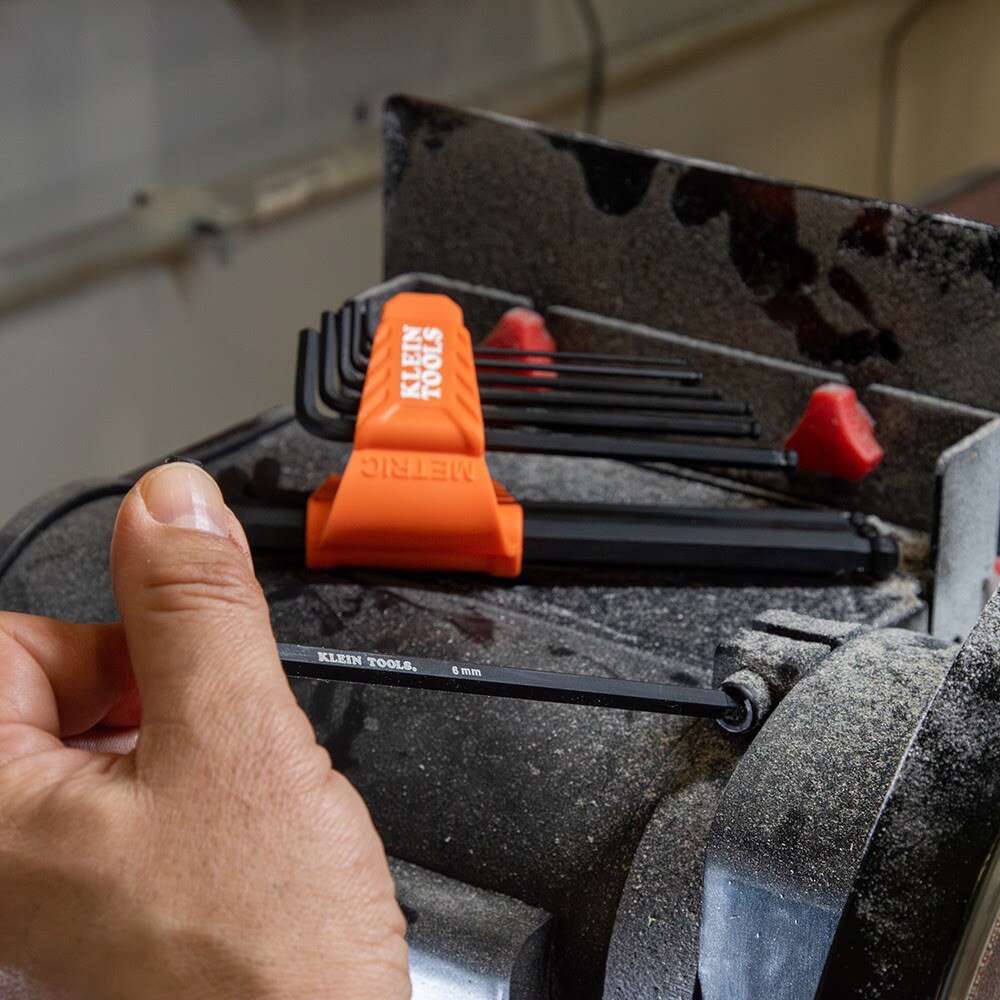 Klein Tools' 22-Key Ball End Hex Key Set conveniently consolidates the most popular metric and SAE sizes into one convenient set. The flexible folding case ensures easy access to keys while providing sleek and adaptable storage options when interlocking SAE and metric cases together. Each key is heat-treated and coated in black phosphate for unparalleled strength and corrosion resistance.