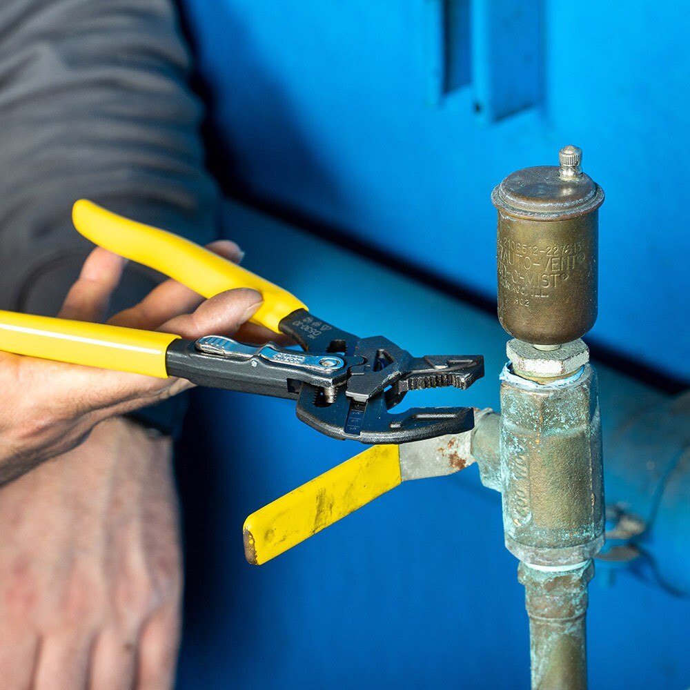 Klein's 3-Piece Plier Wrench Set includes 7-Inch, 10-Inch, and 12-Inch adjustable plier wrenches. Their reversible jaws provide smooth parallel surfaces on one side for use as a traditional plier wrenches, with the added versatility of knurled teeth on the reverse sides when extra bite is needed on pipe or other round objects. They also include unique and efficient push button adjustment.