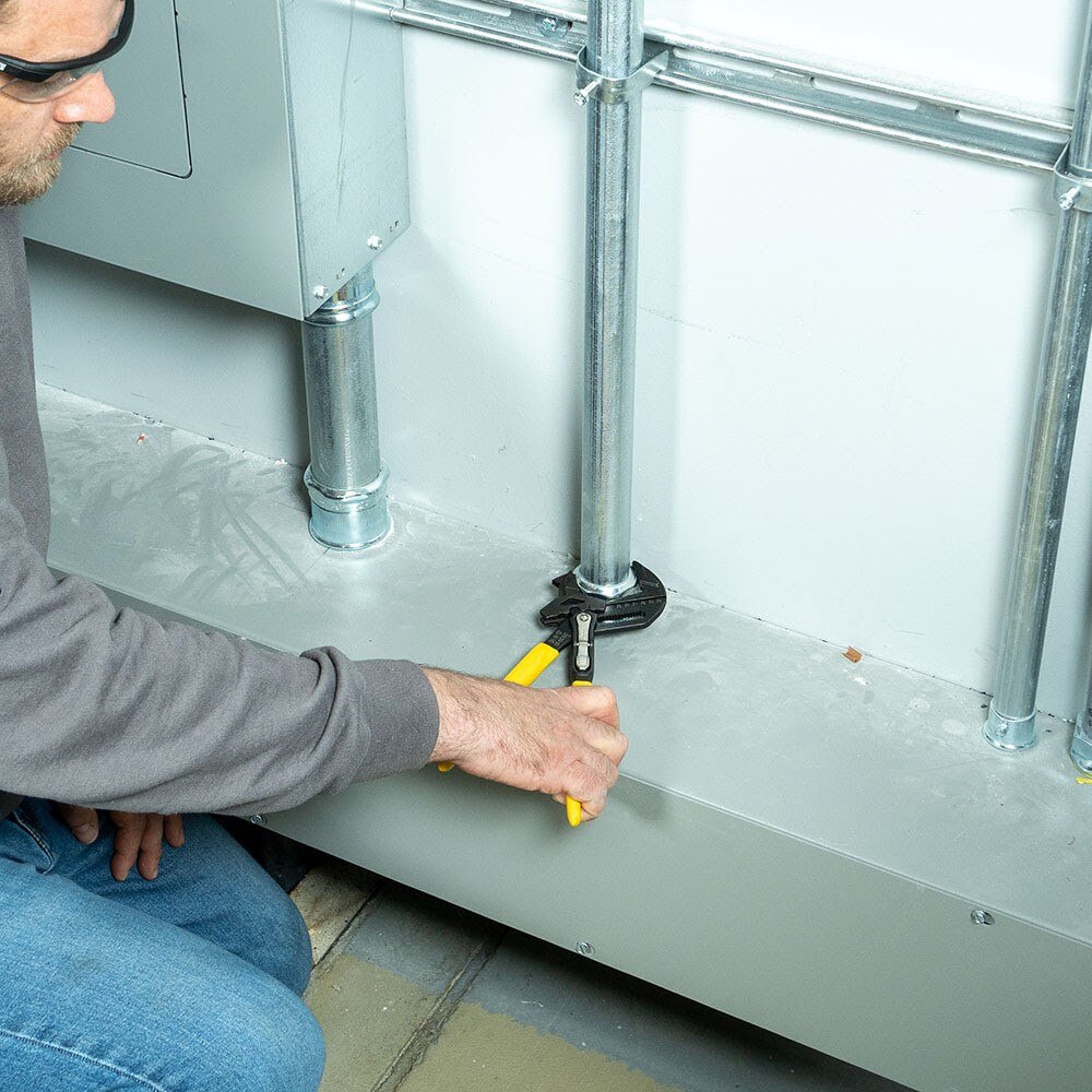 - Reversible jaw provides knurled teeth when extra bite is needed, such as when working with conduit (patent pending design)