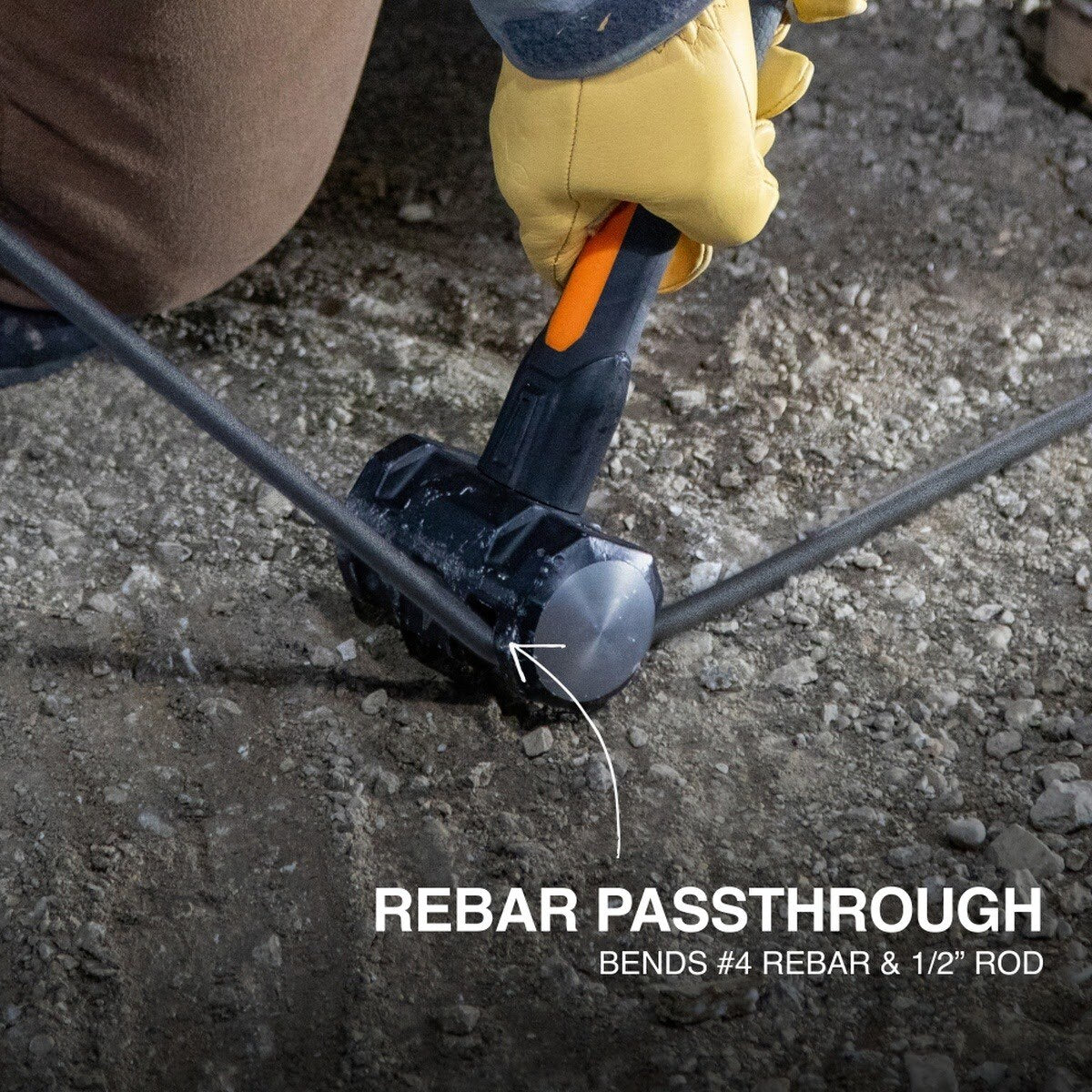 4 lb engineering hammer with forged alloy steel head, fiberglass handle with shock-absorbing grip, overstrike protection, smooth faces, and a hang/rebar passthrough hole for bending #4 rebar and 1/2 inch rod.
