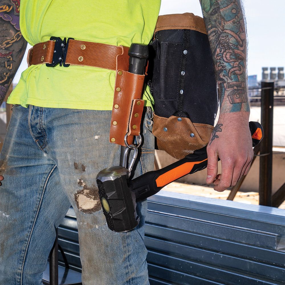 - Sledgehammer features an opening in the hammer head for easy carabiner attachment, ensuring secure placement onto belts and tool organizers
