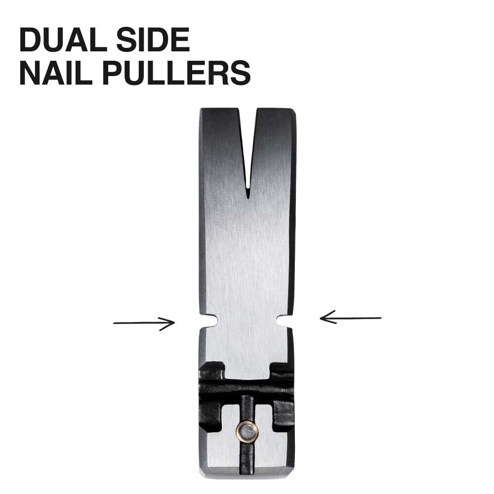 - Dual side nail pullers provide enhanced leverage for easy nail removal, even in tight spaces