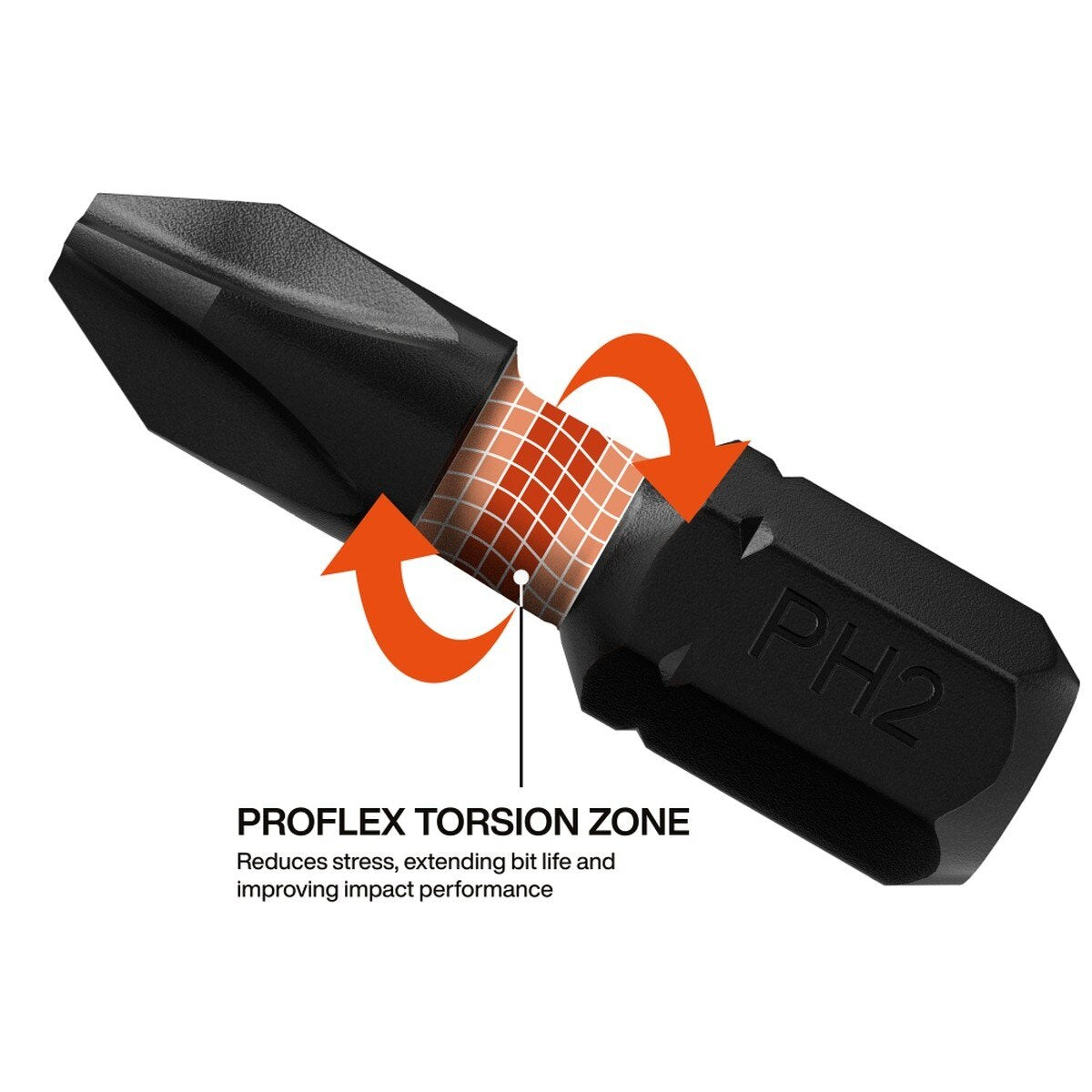 - ProFlex torsion zone reduces stress to extend bit life and improve impact performance
