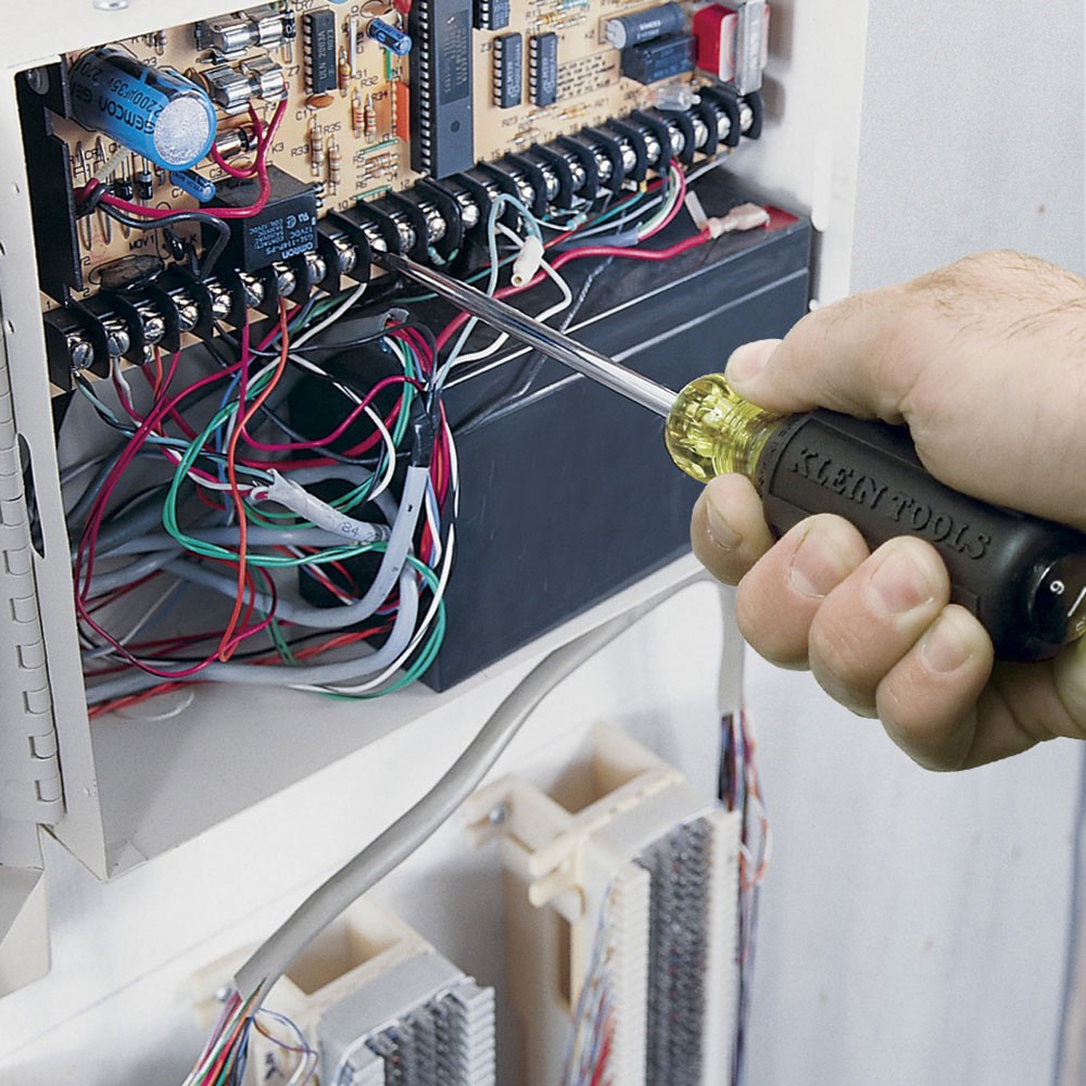 Klein's 3/16-Inch Cabinet Tip Screwdriver features a narrow cabinet tip to make tight spaces easily acceptable. This Cushion-Grip Handle Screwdriver offers the comfort and torque needed for all day work. Its Tip-Ident® quickly identifies screwdriver type and tip orientation, and its 6-Inch shaft is heat-treated for greater tool strength.