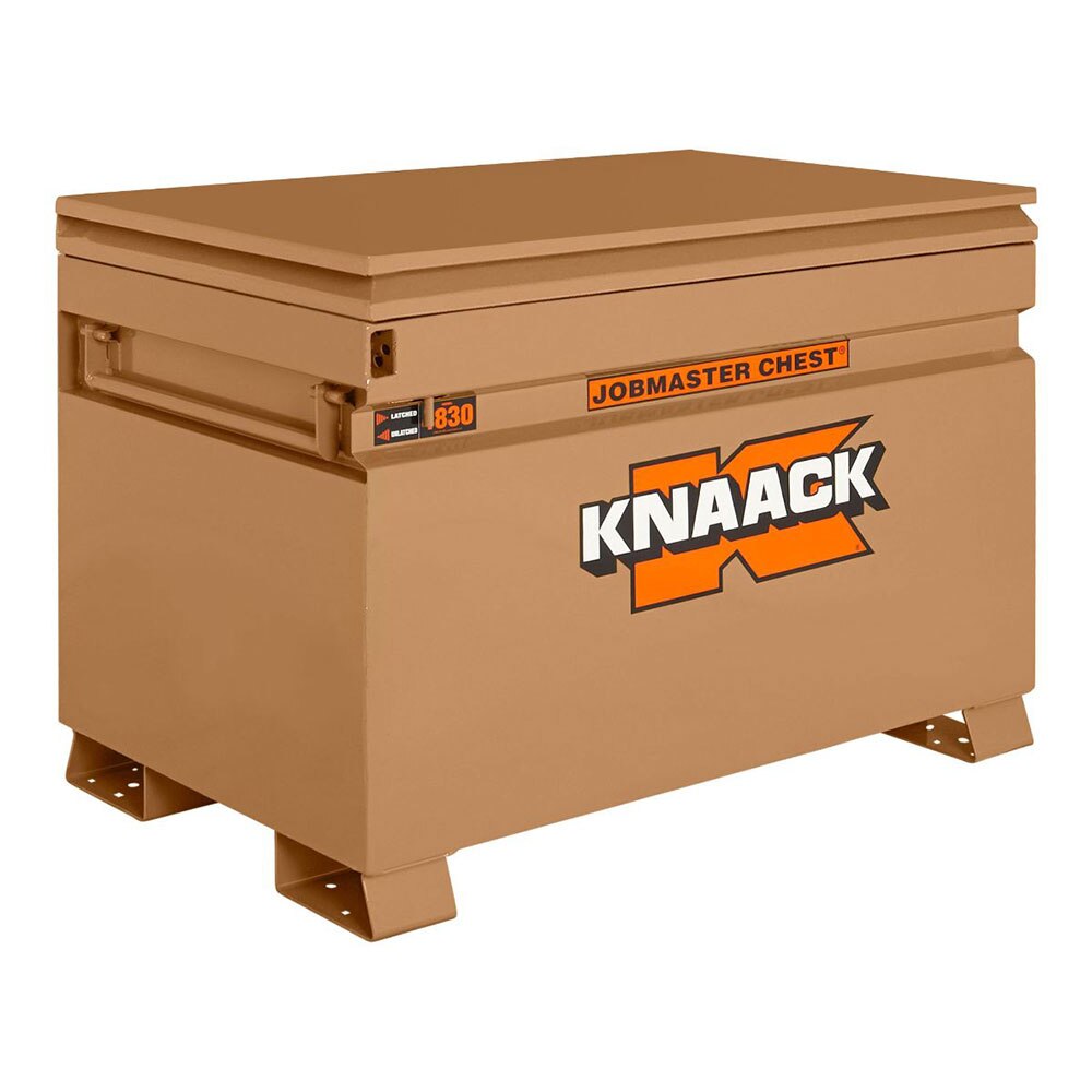 The Model 4830 KNAACK® JOBMASTER™ Chest measures 30in wide by 48in long and has a capacity of 25.25 cu ft. It is versatile, portable and can hold anything from hand and power tools to compressors and features a full length piano hinge, stacked and welded to resist break-in attempts. The size is ideal for a personal box on a jobsite or added security inside a trailer.
