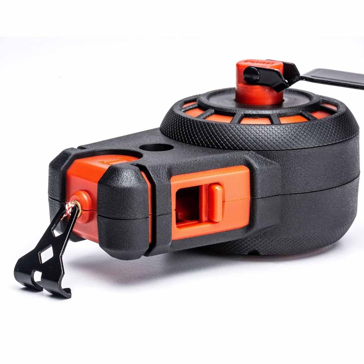 Crescent chalk reels are feature-rich in order to make every pro’s work easier. The 50’ compact reel is no exception. A push-button release disengages the reel so the line can be pulled out faster. The reel also offers 60% more line than similar competitive reels and has a 3:1 gear ratio for quicker retraction, so users can get more done in less time.