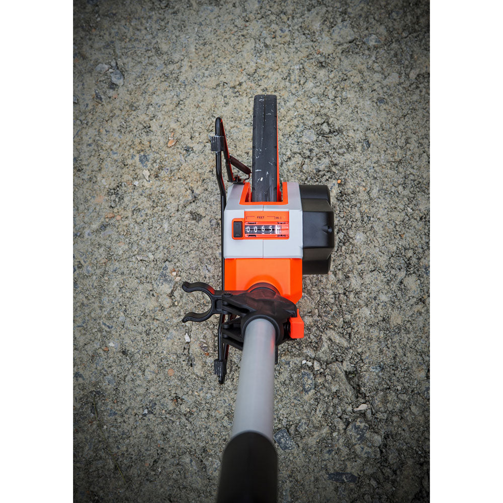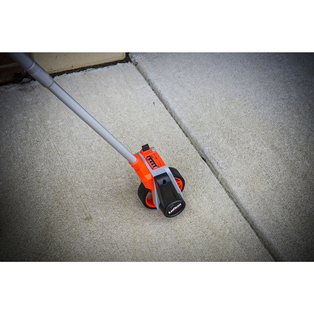 Suitable for measuring vertical, horizontal or curved surfaces, the Crescent Lufkin® 4" Compact Measuring Wheel displays surface dimensions in feet and inches for quick, accurate distance calculations. It features a 4 " centerline drive rubber tire for superb traction on job sites with uneven terrain or long indoor expanses. The analog counter dial calibrated to the wheel counts up to 10,000 ft before rolling over to 0.