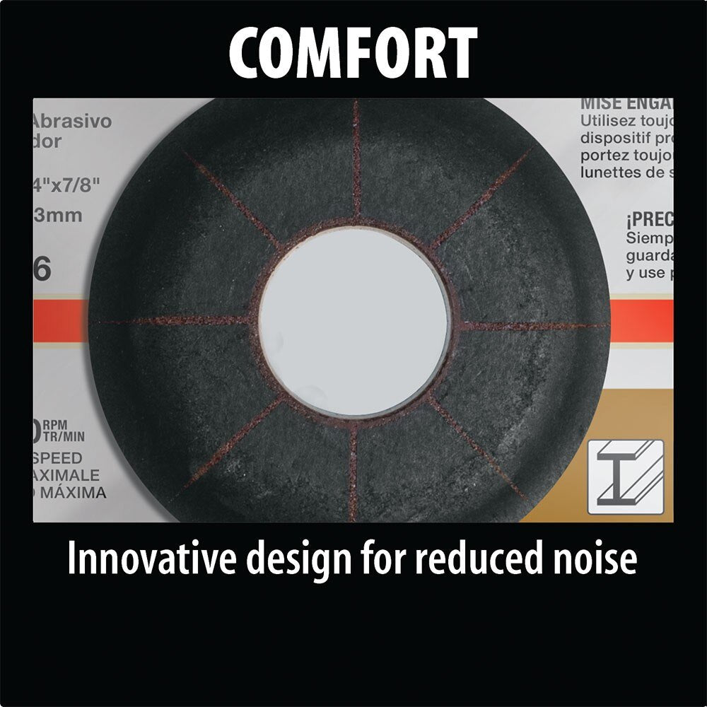 - 36 abrasive grit for efficient material removal, 1/4" thick, 7/8" arbor hole