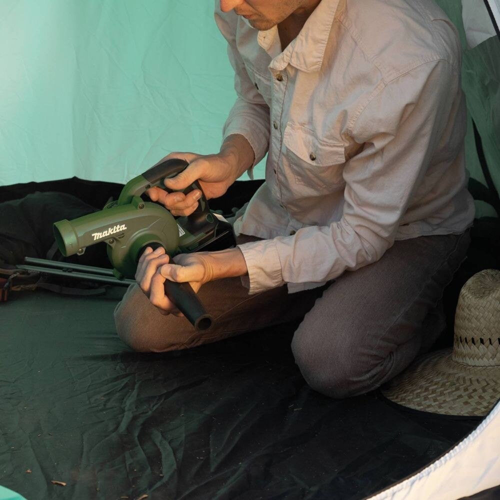 Get outside with Outdoor Adventure, a new series of cordless products that operate within the LXT system. Outdoor Adventure Products feature advanced technology, delivering maximum performance and efficiency for the outdoors. Makita offers hundreds of products within the 18V LXT system so you can create your own adventure. Blow away dust and debris with the Outdoor Adventure™ 18V LXT Blower (ADBU05). It reaches fast speeds of 219 MPH and features a Makita-built high-torque motor with three speeds. The blower weighs just 4.1 lbs. (with battery, sold separately) with a more compact design at 20-3/8” long and an ergonomic shape for reduced operator fatigue. It also features low noise levels and zero emissions for a greener outdoors. It’s part of Makita’s expanding 18V Lithium-Ion System, the world’s largest cordless tool system powered by 18V lithium-ion slide-style batteries. Makita 18V LXT Lithium-Ion Batteries have the fastest charge times in their categories, so they spend more time working and less time sitting on the charger. For improved tool performance and extended battery life, Makita created Star Protection Computer Controls™. Star Protection is a communication technology that allows the Star Protection-equipped tool and battery to exchange data in real time and monitor conditions during use to protect against overloading, over-discharging, and overheating. For increased versatility, the tool can also be powered by Makita 18V LXT Lithium-Ion Batteries with the star symbol on the battery indicating Star Protection inside.