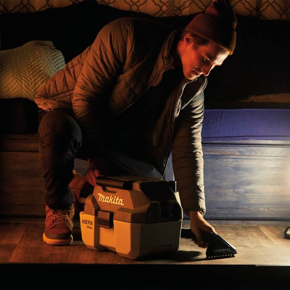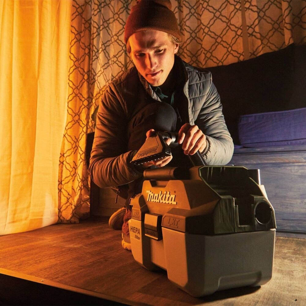 Get outside with Outdoor Adventure, a new series of cordless products that operate within the LXT system. Outdoor Adventure Products feature advanced technology, delivering maximum performance and efficiency for the outdoors. Makita offers hundreds of products within the 18V LXT system so you can create your own adventure. Clean up dirt and liquids from your tent, car, canoe, and more with the Outdoor Adventure™ 18V LXT Brushless Wet/Dry Vacuum (ADCV11). The compact and cordless design with shoulder strap (sold separately) allows easy transport of the vacuum for efficient use. Get up to 60 minutes of continuous run-time and up to 57 CFM and 27” water lift of suction on a single charge of one 18V LXT 5.0Ah battery. It’s part of Makita’s expanding 18V Lithium-Ion System, the world’s largest cordless tool system powered by 18V lithium-ion slide-style batteries. Makita 18V LXT Lithium-Ion Batteries have the fastest charge times in their categories, so they spend more time working and less time sitting on the charger. For improved tool performance and extended battery life, Makita created Star Protection Computer Controls™. Star Protection is a communication technology that allows the Star Protection-equipped tool and battery to exchange data in real time and monitor conditions during use to protect against overloading, over-discharging, and overheating. For increased versatility, the tool can also be powered by Makita LXT Lithium-Ion Batteries with the star symbol on the battery indicating Star Protection inside.