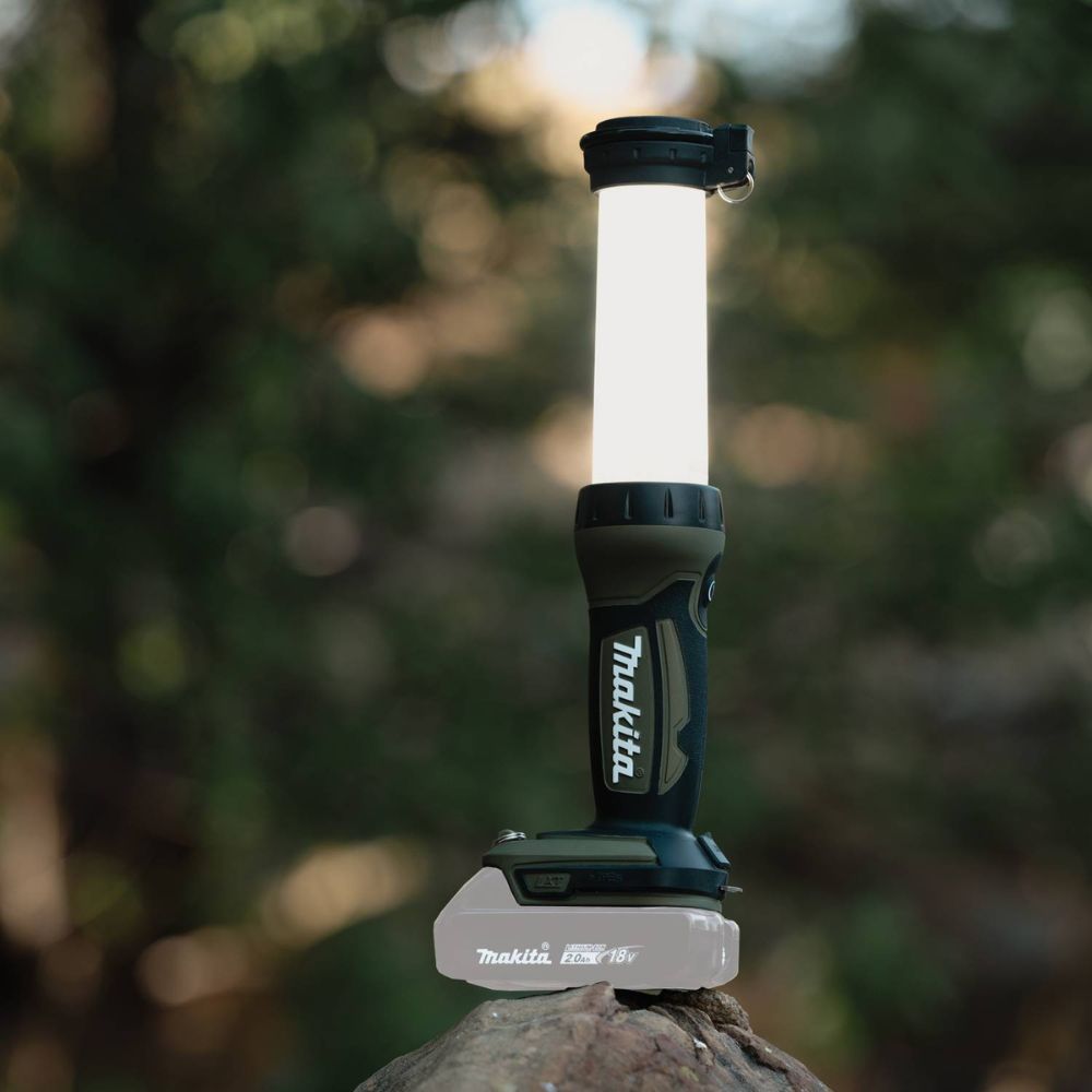 Get outside with Outdoor Adventure, a new series of cordless products that operate within the LXT system. Outdoor Adventure Products feature advanced technology, delivering maximum performance and efficiency for the outdoors. Makita offers hundreds of products within the 18V LXT system so you can create your own adventure. Light up the outdoors with the 18V LXT Lithium-Ion Cordless L.E.D. Lantern/Flashlight (ADML807). Have the Power to go Anywhere with this versatile light that will provide some much-needed illumination for any outdoor activity. There are three L.E.D. lighting modes: 360-degree lantern, 180-degree lantern, and flashlight mode. These versatile settings allow the user to select between lighting the entire environment or on a specific area. The fast-charging 18V LXT Lithium-Ion 5.0Ah battery (sold separately) delivers 11 hours of continuous illumination on a single charge in the 360-degree lantern mode, up to 23 hours in the 180-degree lantern mode, and up to 36 hours in flashlight mode. It is fully compatible with Makita 18V Lithium-Ion batteries. It’s part of Makita’s expanding 18V Lithium-Ion System, the world’s largest cordless tool system powered by 18V lithium-ion slide-style batteries. Makita 18V LXT Lithium-Ion Batteries have the fastest charge times in their categories, so they spend more time working and less time sitting on the charger.