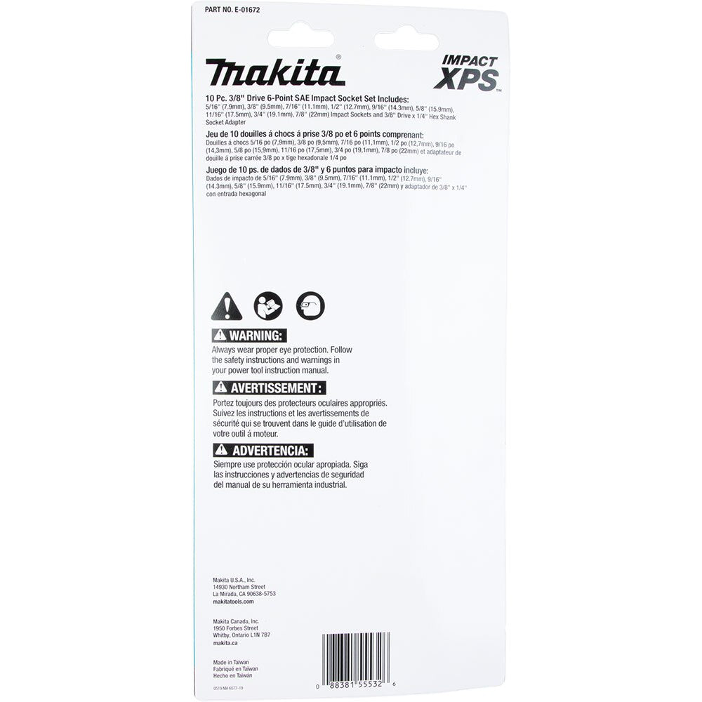 Makita E-01672 Impact XPS 10-Piece 3/8" Drive 6-Point SAE Impact Socket Set