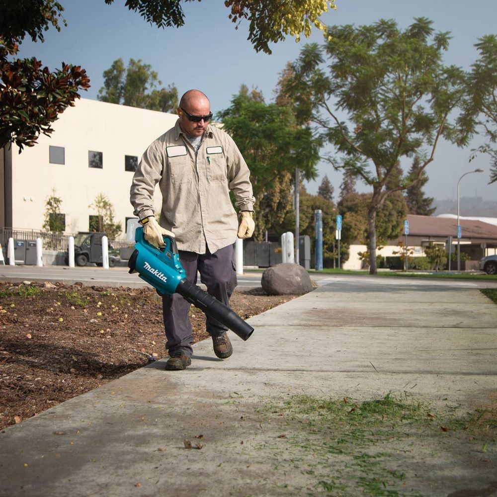 With zero emissions and lower noise, the 40V max XGT® Brushless Cordless Blower (GBU01Z) is a welcome solution for professional landscaping clean-up applications. The brushless motor runs cooler and more efficiently for longer life and delivers speeds up to 143 MPH air velocity. Select turbo boost mode for 564 CFM to move heavy debris. The blower features a variable speed trigger to adjust speeds between 0-476 CFM. A cruise control lever provides management of power and run time and a speed lock provides continuous operation. 3-stage telescoping long nozzle allows the user to adjust the nozzle of the blower to cover varying area ranges. The in-line fan design provides better tool balance and improved ergonomics. For added durability in harsh job site conditions, Extreme Protection Technology (XPT™) is engineered for improved dust and water resistance. A hole at the housing bottom allows the blower to be hung for easy storage. XGT is a system of equipment, tools, batteries and chargers utilizing 40v max lithium-ion batteries.