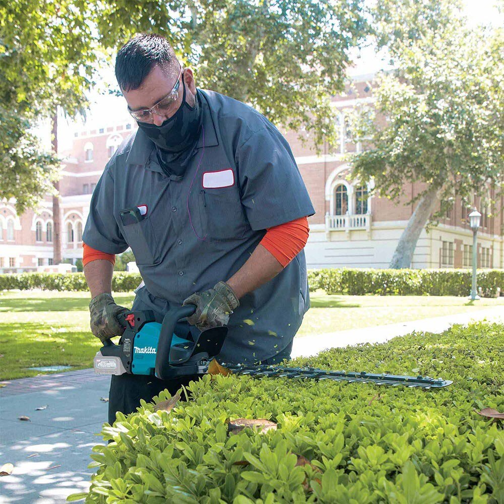 With zero emissions and lower noise, the 40V max XGT® Brushless Cordless 24” Rough Cut Hedge Trimmer (GHU01Z, tool only) is a welcome solution for professional landscaping clean-up applications. The Makita-built brushless motor delivers up to 4,000 SPM for powerful trimming. It has three speed options to manage power and run time. The sharp-edged shear blade can trim through thick and hard branches. A reverse function clears jams. The hedge trimmer can get up to 3 hours of run time using one (1) 40V max XGT 4.0Ah Battery. The 5-position rotating rear handle provides increased comfort during vertical and angle trimming. A tip guard protects the end of the cutter bar against hard surfaces. For added durability in harsh job site conditions, Extreme Protection Technology (XPT™) is engineered for improved dust and water resistance. The power head also features IPX4-rated weather-resistant construction for added durability. XGT is a system of equipment, tools, batteries, and chargers utilizing 40v max lithium-ion batteries. XGT is engineered to deliver high power to take on high-demand applications, allowing users to completely transition to a cordless job site. XGT is equipped with advanced brushless motor engineering, intelligent digital communication, and superior durability features to outpower, outsmart and outlast the rest.