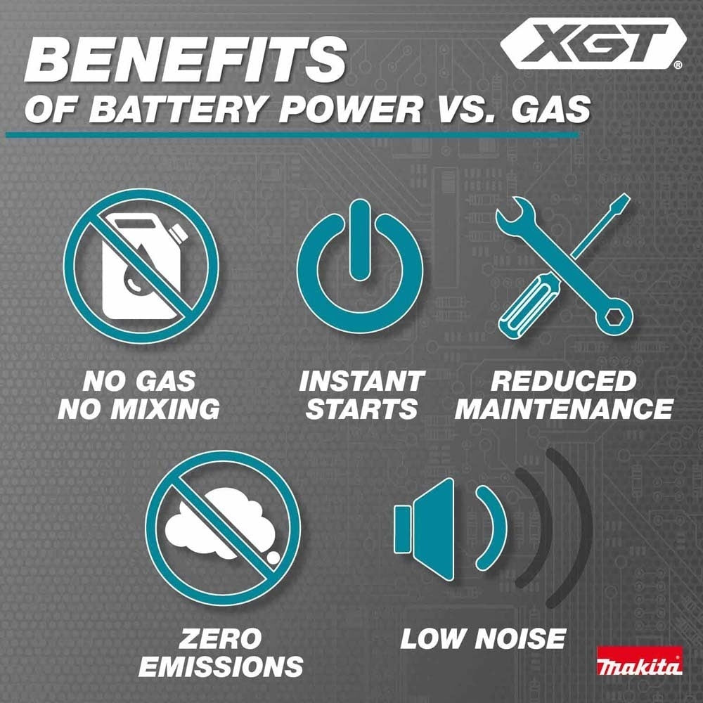 - Up to 65 minutes of run time on High with 40V XGT® 4.0Ah battery