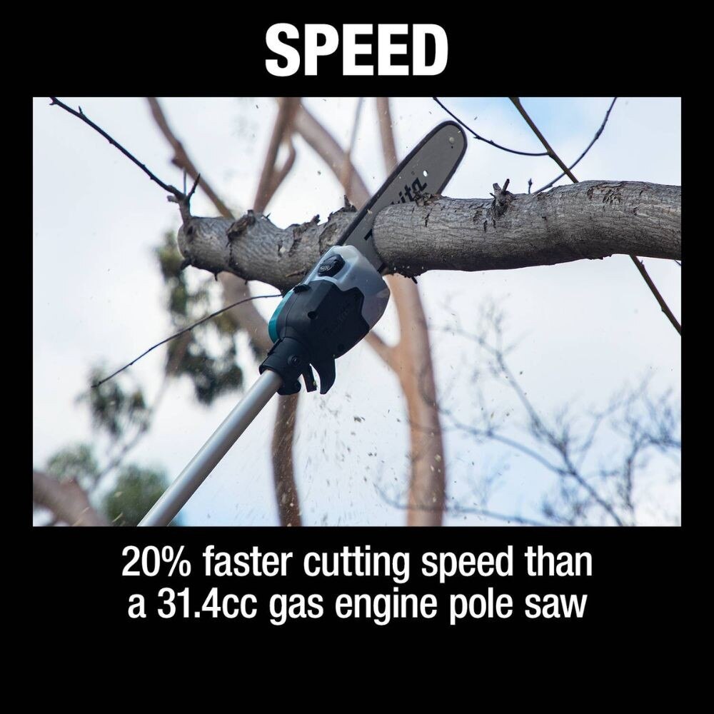 - Makita-built BL™ Brushless Motor delivers power of a 30cc gas pole saw