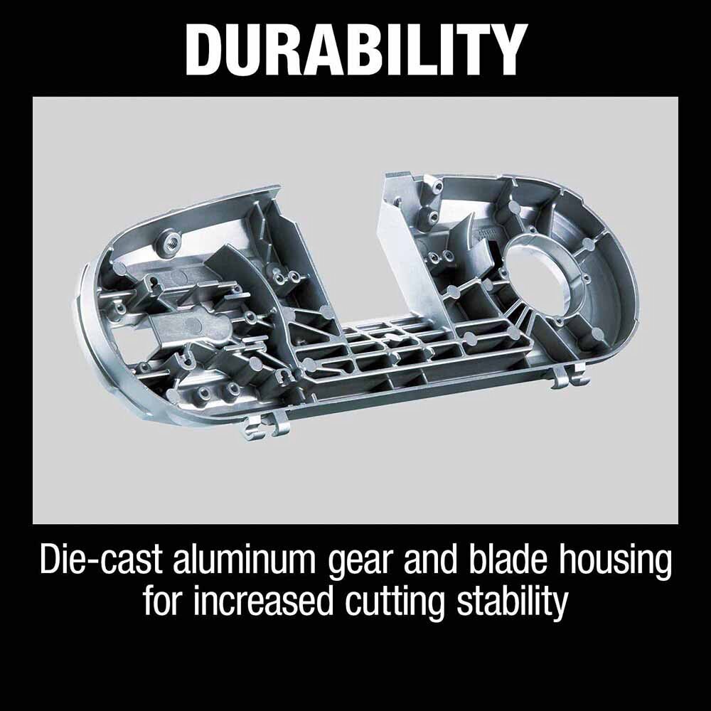 - Die-cast aluminum gear and blade housing for increased cutting stability