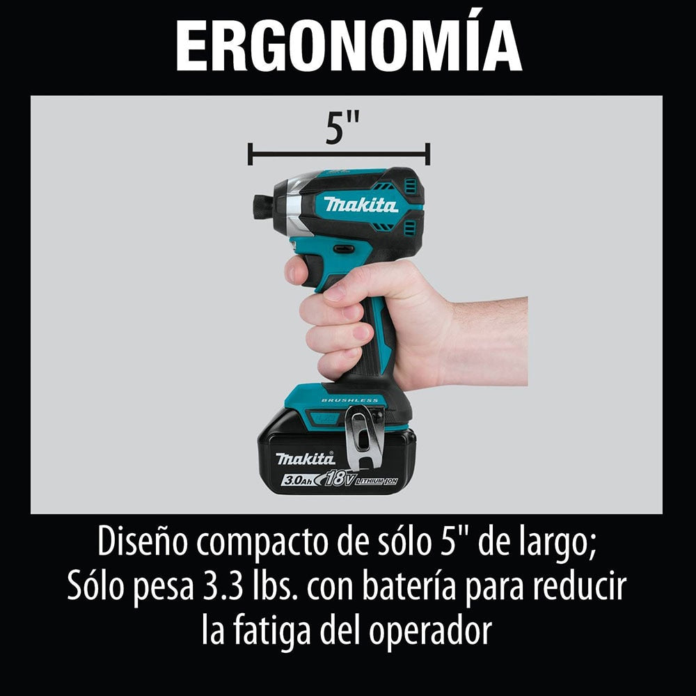 The Makita 18V LXT Lithium-Ion Brushless cordless impact driver kit (XDT131) delivers maximum versatility and performance, with an efficient Makita BL Brushless Motor for up to 50% longer run time, increased power and speed, and longer tool life. The kit includes an efficient 18V LXT 3.0 Ah battery which reaches a full charge in only 30 minutes – the fastest charge-time in its category – for less downtime and increased productivity. The XDT131 is engineered for a full range of driving and fastening tasks including fastening deck screws, TEK screws, cabinet screws, tightening down lag bolts, and much more. It is ideal for HVAC, electricians, plumbers, automotive mechanics, woodworkers, remodelers, and any pro contractor who requires a best-in-class cordless impact driver.