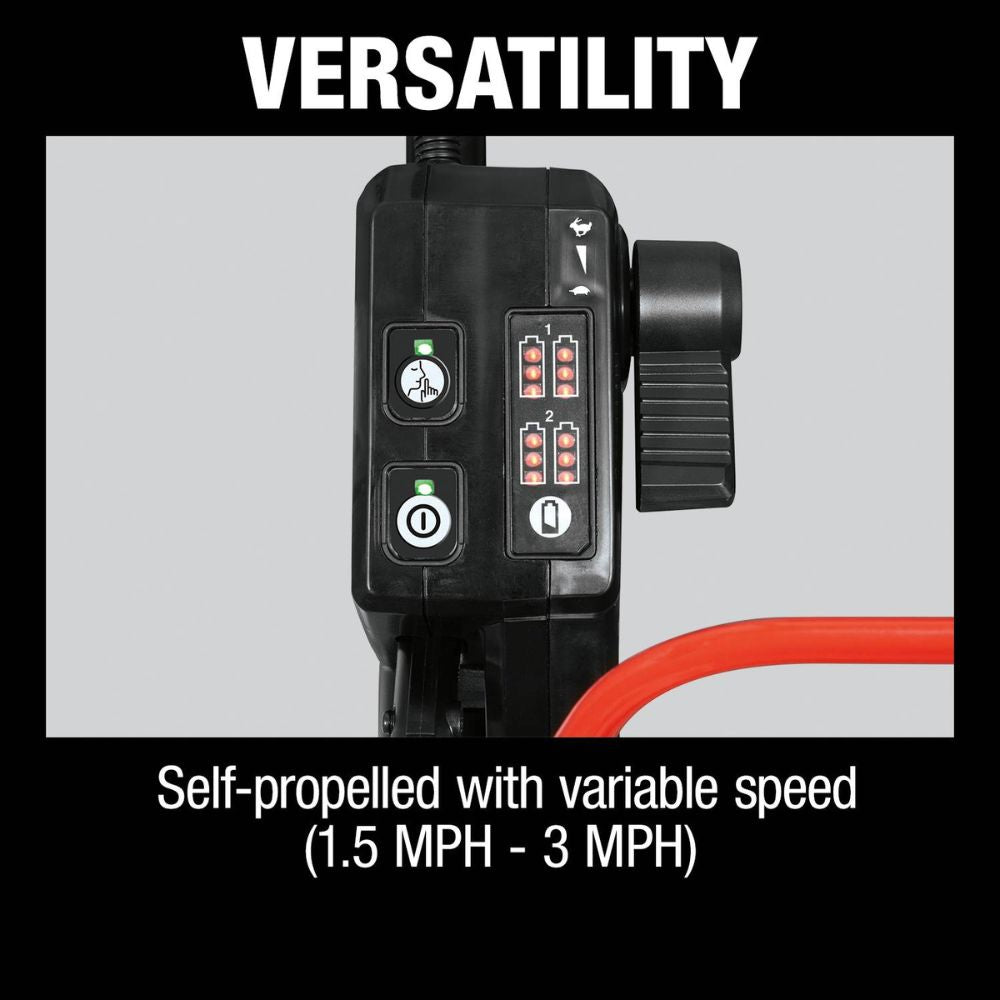 - Self-propelled with variable speed (1.5 MPH - 3 MPH)
