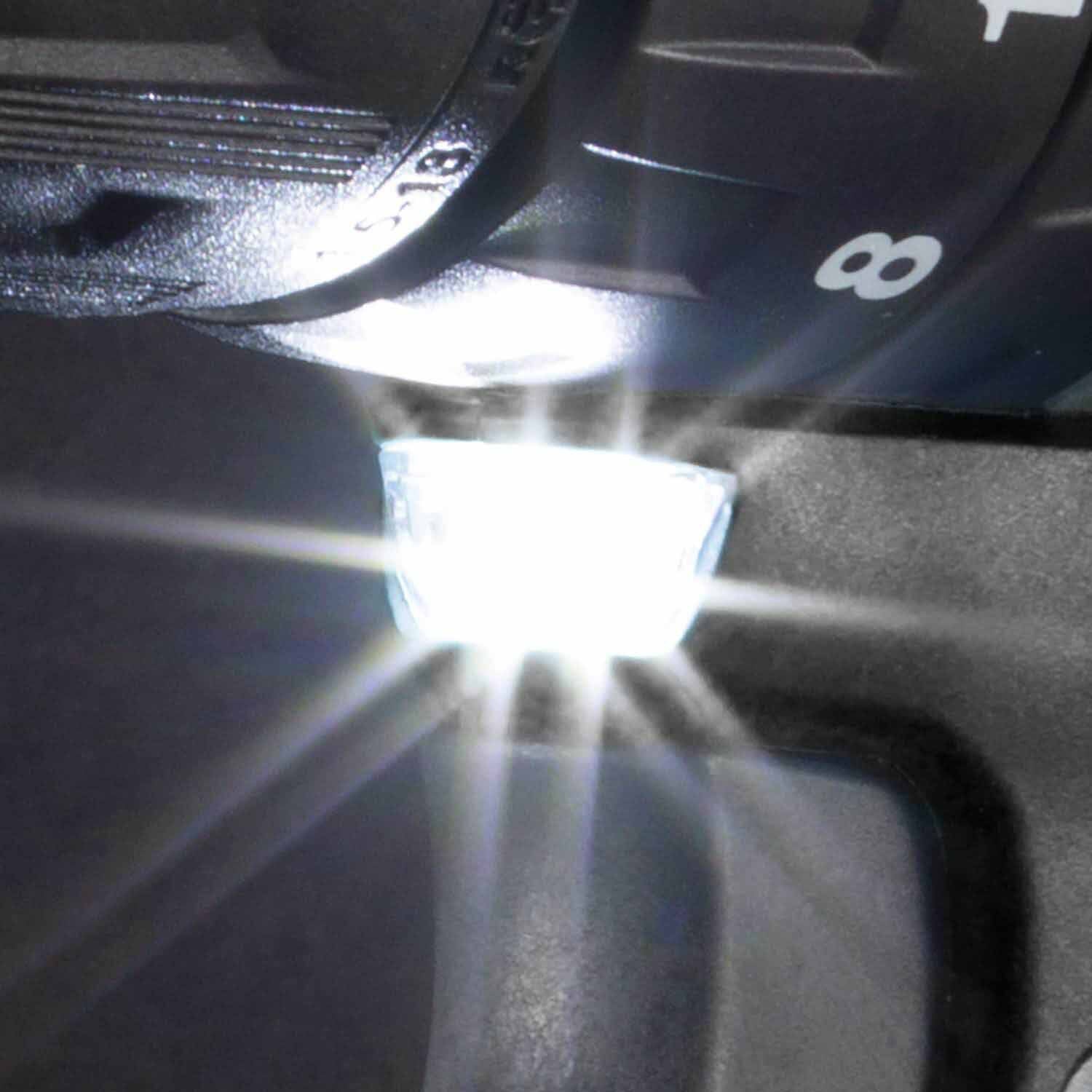 - Dual L.E.D. lights illuminate the work area