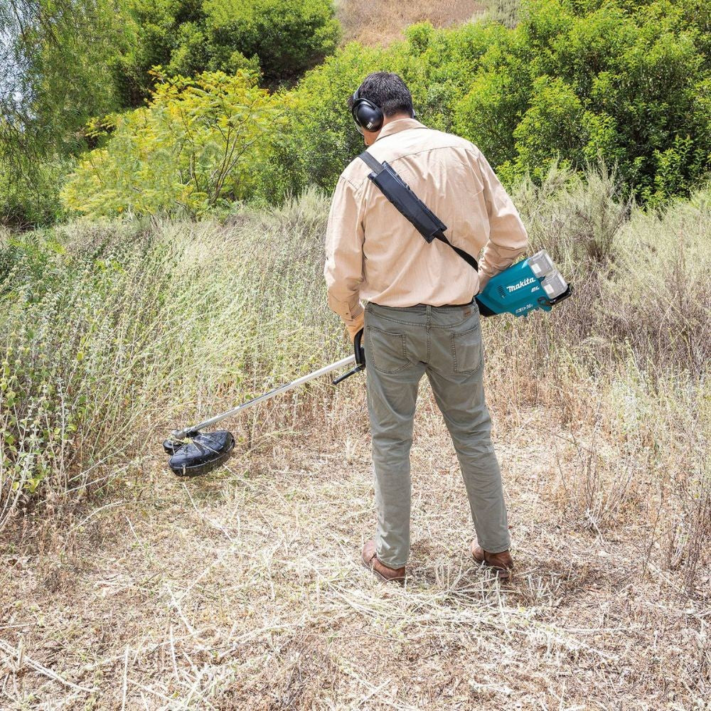 The Makita® 36V (18V X2) LXT® Brushless String Trimmer, Tool Only (XRU17Z) delivers power and ease-of-use for commercial applications. It has the power equivalent to a 30cc gas string trimmer, but without the hassles of gas. The cordless brush cutter has lower noise, zero emissions, and reduced maintenance. Features of the cordless string trimmer include a 17” cutting swath for increased productivity, a BL™ Brushless Motor for power, and a variable speed trigger switch to control cutting speed. The steel drive shaft provides less vibration and durability for longer life. It has three speed options (4,600/5,500/7,000 RPM). The Automatic Torque Drive Technology mode automatically shifts speeds to extend run time or add power. The reverse rotation function allows the user to quickly clear trimmer head of entangled grass and weeds. The string trimmer features Makita Extreme Protection Technology (XPT™). XPT™ is a protective seal inside the tool and is engineered for improved operation in harsh conditions by channeling water and dust from key internal components. It’s part of Makita’s expanding 18V LXT System, the world’s largest cordless tool system powered by 18V lithium-ion slide-style batteries. Makita 18V LXT Lithium-Ion Batteries have the fastest charge times in their categories, so they spend more time working and less time sitting on the charger. Batteries are sold separately.
