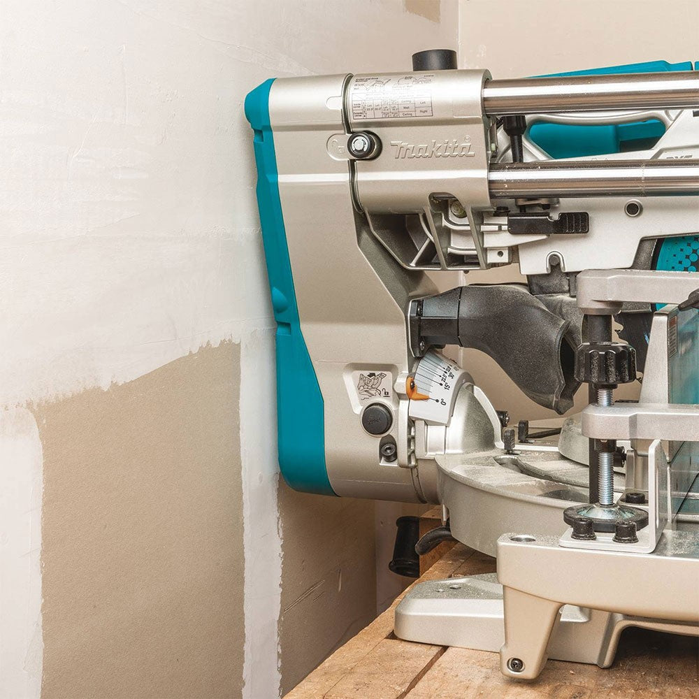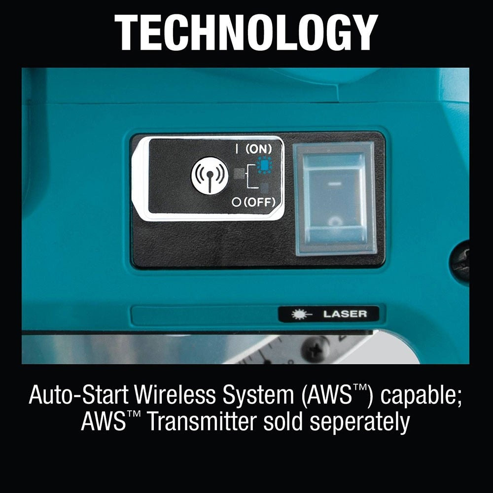 Makita is a pioneer in brushless motor engineering, battery technology, and miter saw innovation and has combined this expertise in the 18V X2 LXT® (36V) Lithium-Ion Brushless 12" Dual Bevel Sliding Compound Miter Saw (tool only, batteries and charger sold separately). It's powered by two 18V Lithium-Ion batteries for 36V power and performance, but without leaving the 18V LXT® platform. X2 LXT technology delivers increased power, speed, and run time, without the hassles of a cord. Get up to 175 cuts per charge in 2x12 SPF lumber with two 5.0Ah batteries (sold separately). The efficient BL™ Brushless Motor runs cooler and more efficiently for longer tool life and delivers up to 4,400 RPM for fast and smoother cutting. The XSL08Z also features Automatic Speed Change™ technology to adjust cutting speed and torque under load for optimum performance. For improved efficiency, it’s equipped with Auto-Start Wireless System technology. AWS™ utilizes Bluetooth® technology for wireless communication between the tool and dust extractor (sold separately). When the trigger of the AWS-equipped XSL08Z is engaged, the AWS-equipped dust extractor powers-up. When the trigger is released, the dust extractor powers-down. AWS is intelligent communication that eliminates cords and excessive noise since the dust extractor runs only when the tool is running. The XSL08Z has a unique 2-steel rail sliding system design that offers single slide-glide operation for smooth and dead-on accurate cutting right out of the box, as well as a reduced overall footprint that allows the saw to be positioned flush against a wall. The innovative direct-drive gearbox and guard system is engineered for increased vertical cutting capacity (6-3/4"), crown molding cutting capacity (8" nested), and 15" crosscuts at 90 degrees. The saw miters 0° to 60° left and right, with positive stops at 0°, 15°, 22.5°, 31.6°, 45° and 60° (left or right). The bevel lock is located in the front of the saw for easy access and quick adjustments from 0° to 48° (left and right). The direct drive gearbox with soft Start is a key point of difference. Direct drive enables smoother Start-ups and consistent, constant power with no belts to slip or replace. Additional features include a built-in laser that indicates the line-of-cut, dual dust collection ports for excellent dust extraction performance and an electric brake provides added convenience. It also has a large-sized aluminum base that improves the stability of cutting stock for more efficient cutting. The XSL08Z includes a 12" 60T Carbide-Tipped Max Efficiency Miter Saw Blade. The thin-kerf design provides smoother cuts with less drag on the motor and minimal material loss. Compared to standard blades the Max Efficiency Miter Saw Blade delivers up to 100% faster cutting. It’s part of Makita’s expanding 18V Lithium-Ion system, the world’s largest cordless tool system powered by 18V Lithium-Ion slide-style batteries. Makita 18V Lithium-Ion batteries have the fastest charge times in their categories, so they spend more time working and less time sitting on the charger. For improved tool performance and extended battery life, Makita created Star Protection Computer Controls™. Star Protection is communication technology that allows the Star Protection-equipped tool and battery to exchange data in real time and monitor conditions during use to protect against overloading, over-discharging and overheating.