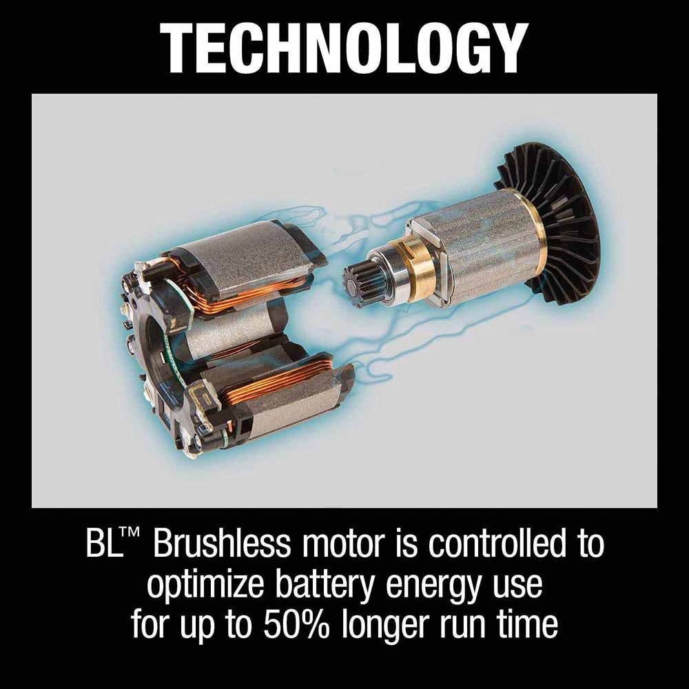 - The electronically-controlled BL™ Brushless Motor efficiently uses energy to match torque and RPM to the changing demands of the application