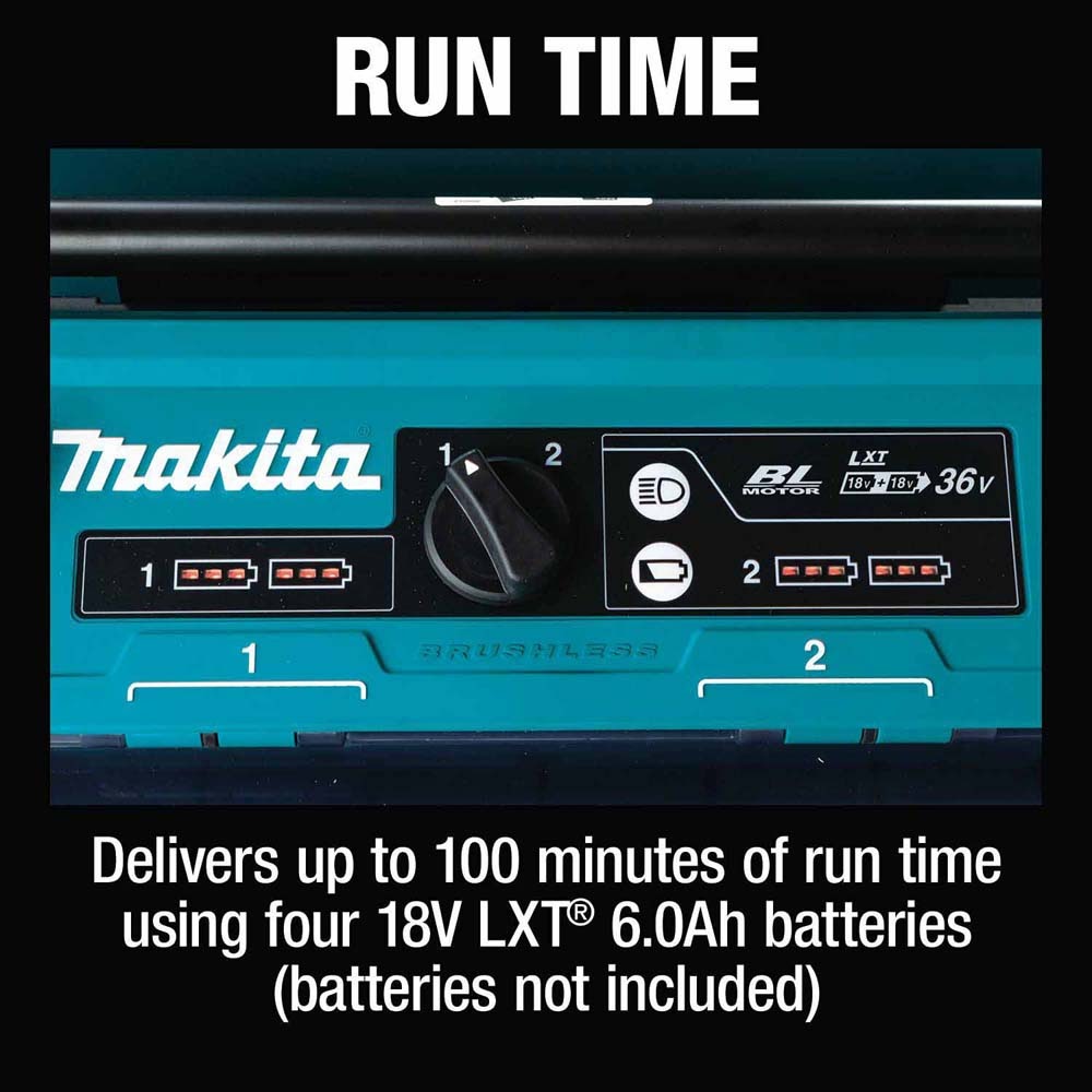 - RUN TIME - Delivers up to 100 minutes of run time using four 18V LXT® 6.0Ah batteries (battery not included)