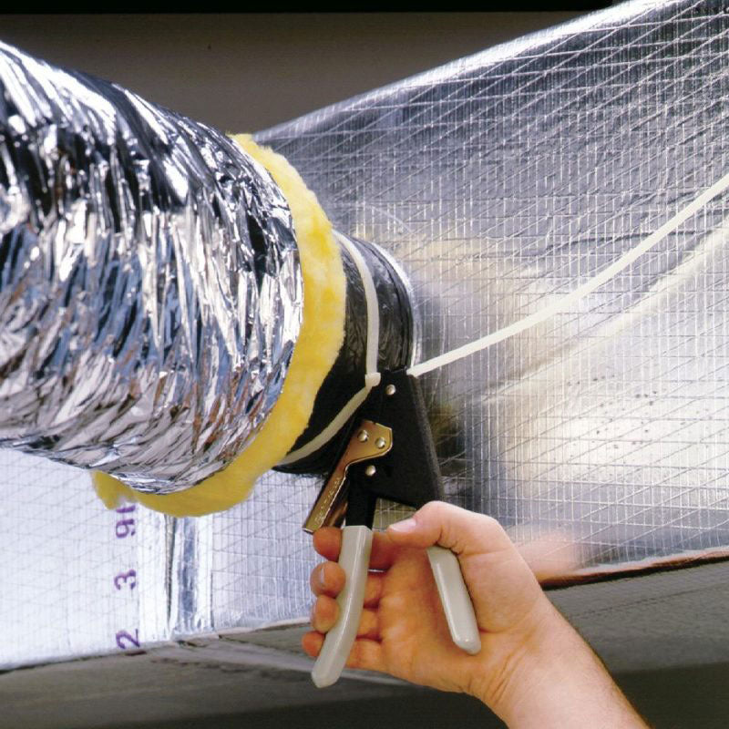 Malco TY4G Manual Cut-Off Tie Tool with Grips. Malco’s TY4G Tie Tensioning Tool tightens nylon ties to fiberglass duct take off connections faster, easier, and with better quality than can be done by hand.