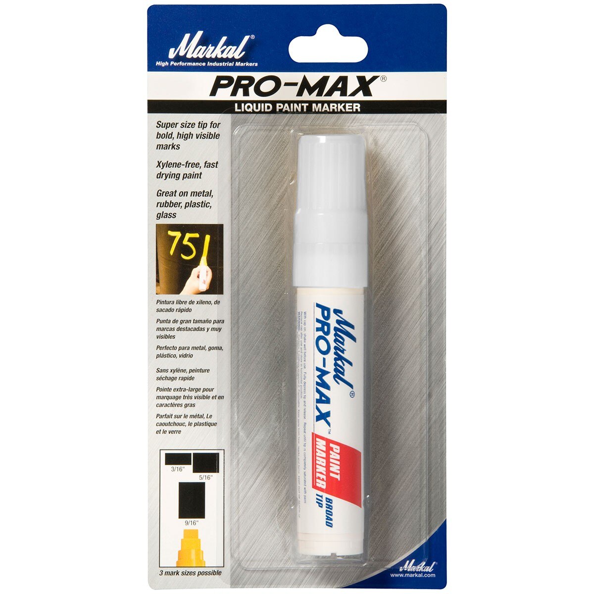 PRO-MAX is a liquid paint marker with an extra-large tip to provide the biggest and most highly-visible marks. The wear-, water- and weather-resistant paint dries quickly to leave bold, easy-to-read marks and is safe for almost any surface.