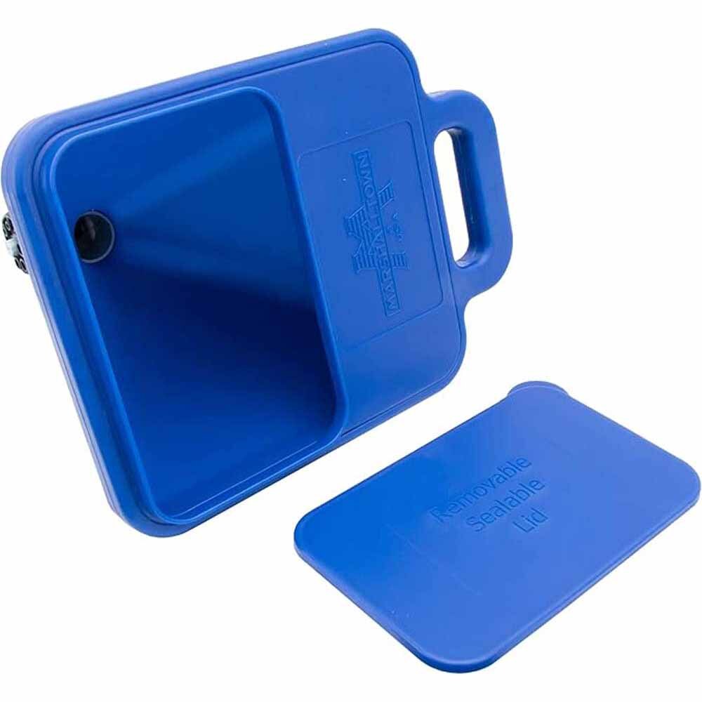 - 2-gallon seamless hopper reduces material build-up and clogging