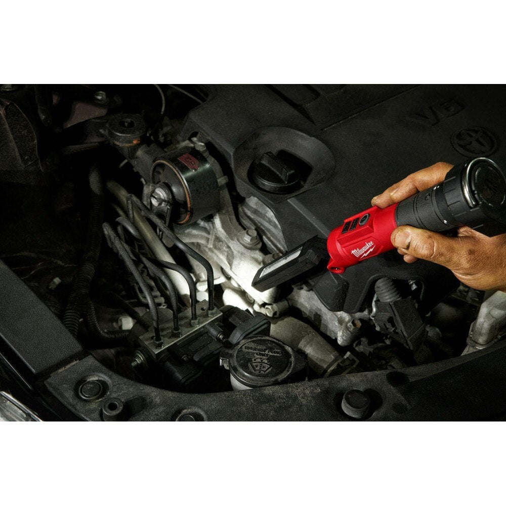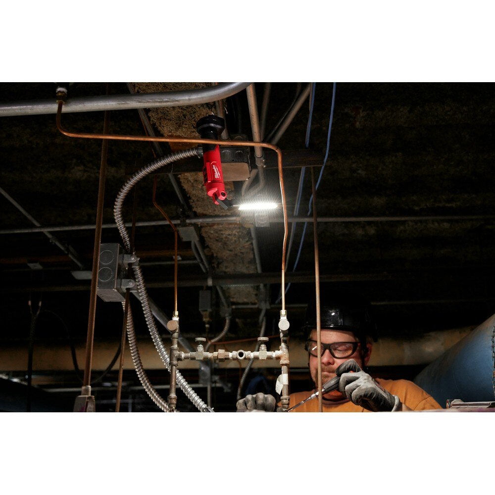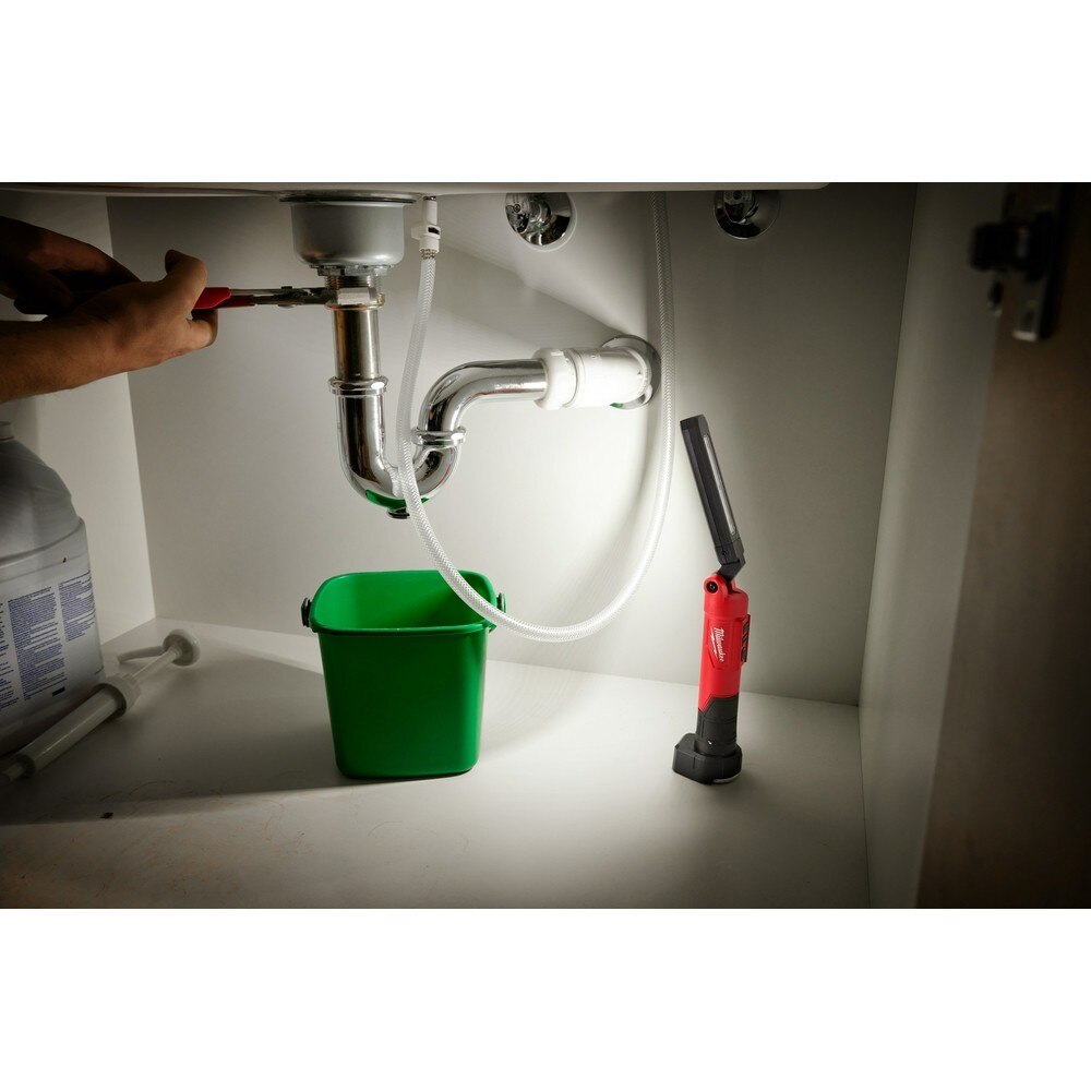 The MILWAUKEE REDLITHIUM™ USB Stick Light w/ Magnet revolutionizes the way pros complete general tasks and inspection work. This innovative light delivers UNMATCHED UTILITY FOR LIGHTING IN TIGHT SPACES. The compact size and slim light blade design, paired with a strong magnet and hook, allow for all-access lighting and limitless mounting positions. Featuring 220° of vertical light head rotation and 4 total modes; inspection, front, back, or both panel selections admits better light positioning and beam control. The REDLITHIUM™ USB Stick Light w/ Magnet has 550 lumens of TRUEVIEW™ High-Definition output and 2 hours of run-time on HIGH, with 3 brightness options to manage output and run-time. Use the integrated USB-C port for quick charges in between jobs. This light is robust in design, IP54 rated, impact resistant to heights of 6 feet, and corrosion-resistant to most chemicals found in-shop or on-site. Guaranteed by our limited lifetime warranty.