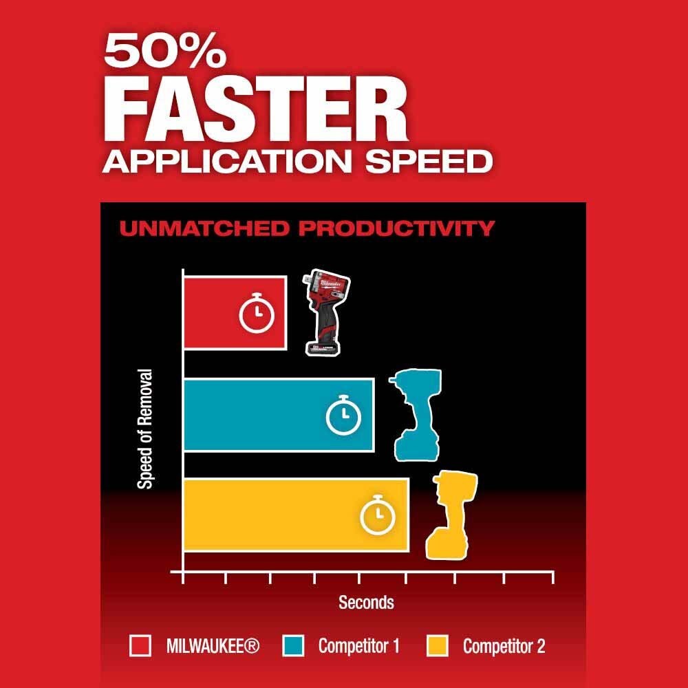 The new MILWAUKEE 1/2” Stubby Impact Wrench w/ Pin Detent delivers the Most Power, Is Lighter Weight & More Compact while delivering 50% Faster Application speeds. Leveraging POWERSTATE Brushless Motor, The Stubby Delivers 0-3,000 RPM with up to 550 ft-lbs of Nut Busting Torque, allowing the removal of the most corroded and stubborn applications. This Milwaukee solution delivers on performance and size, at only 2.2 lbs bare tool. Users will experience less fatigue throughout their work week while fitting into tight spaces and allowing access where larger impacts can't fit without using additional accessories or disassembling components to reach the desired fastener. Equipped with Tri LED work lights to illuminate your work area without the frustration of shadows. 4-Mode DRIVE CONTROL for greater precision and customization to your desired power output, including AUTO SHUT-OFF that applies no more than 15 ft-lbs of torque for hand-tight applications that prevent overtightening when in forward. In reverse, bolt removal mode will slow down the RPM once the bolt is free to prevent bolts from flying around your work area. To change the modes, it is a single-handed operation. By shifting the forward-reverse shuttle into neutral and double-tapping the trigger, you will be able to change modes effortlessly.