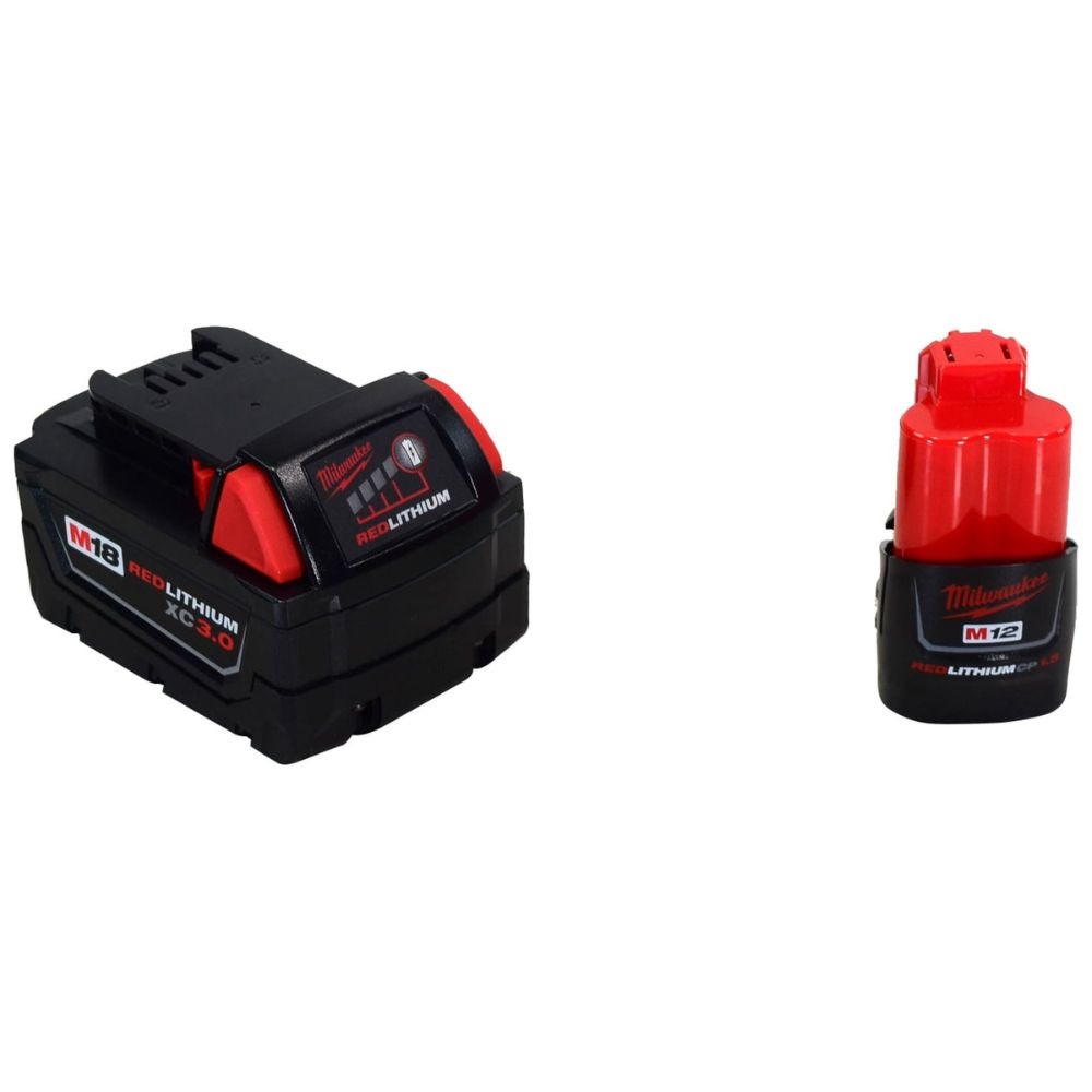 - M12 compact battery (48-11-2401) has a lightweight design to fit into tight workspaces and reduce user fatigue