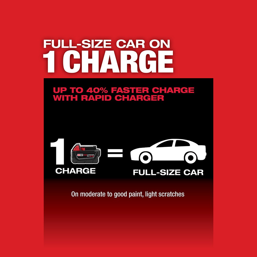 The M18 FUEL(TM) 7" Variable Speed Polisher is the world’s first cordless full-size rotary polisher. By harnessing the power, performance and run-time of M18 FUEL(TM) technology, this tool delivers corded performance that allows users to power through the most demanding applications. At more than 1lb lighter than corded, and the ability to deliver total control through a variable speed dial and trigger, the new M18 FUEL(TM) Polisher frees users from the extra work, distractions, paint damage, and inconvenience caused by cords. Paired with M18 XC5.0 batteries, the M18 FUEL(TM) Polisher can complete a full size car on one charge when working on moderate to good paint. The M18 FUEL Polisher is equipped with a rubber over mold front housing to protect the paint from scratches in use as well as a removable dust cover to protect the motor and electronics from wool fibers and residue. The new tool is designed to distribute more of its weight over the pad, providing natural pressure on the surface area and more.