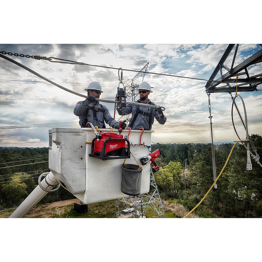 The M18™ FORCE LOGIC™ 10,000psi Hydraulic Pump is the Easiest Way to Power Hydraulics. Designed to be fully compatible with all existing 10,000psi rated hydraulic hoses and heads the Hydraulic Pump fundamentally changes the way that Transmission lines get installed. Delivering the easiest set-up at up to 80% smaller and up to 75lbs lighter than gas units the pump can be easily carried by a single person. Utilizing the available bucket hanger attachment creates a stable, level operating position that maximizes the available space in buckets and baskets. A high pressure flow rate 3X that of competitive cordless pumps delivers gas-like performance; 24 second cycle times and up to 60 presses on a single battery on 1590 ACSR connectors. Three-Modes of operation gives users the flexibility to modify tool operation to their specific application. Wireless Mode creates a physical air gap between an operator and a potentially live electrical line when performing a remote cut. PFM™ (Predictive Force Monitoring) provides instant pressure verification with a green indicator. Milwaukee® ONE-KEY™ Technology enables the user to store real time cycle data, generate professional reports, view historical tool performance data and sync it all wirelessly to the cloud for easy access. Featuring a POWERSTATE™ Brushless Motor, REDLINK™ Electronics and REDLITHIUM™ Batteries results in Unmatched Reliability in the toughest environments. The kit includes (1) M18™ REDLITHIUM™ High Output™ HD12.0 Battery, M18™ and M12™ Rapid Charger and Inverter.