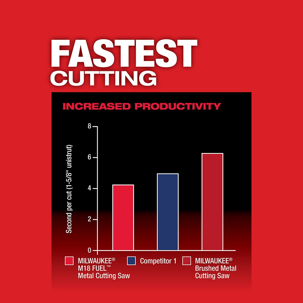 - Brushless motor with 3900 RPMs delivers the FASTEST CUTTING metal cutting saw