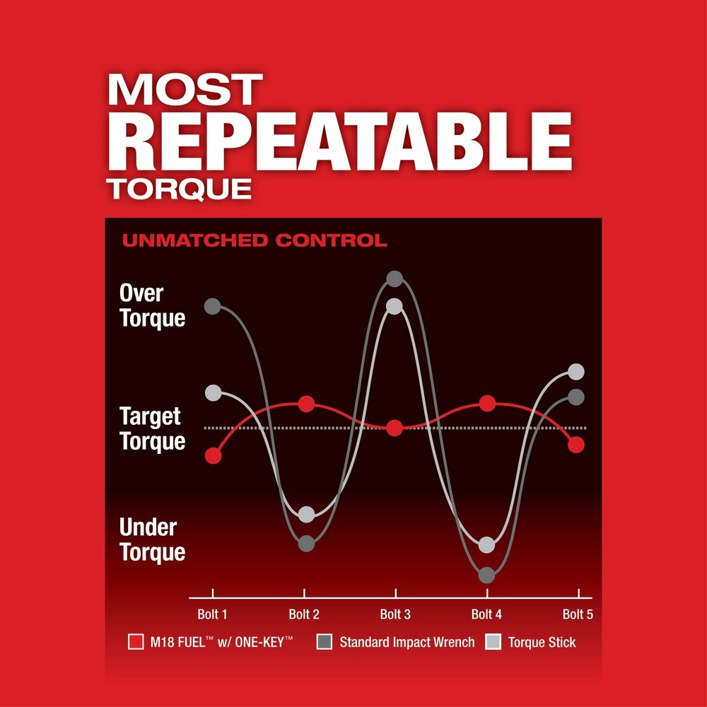 - M18 FUEL with ONE-KEY technology provides the most repeatable Impact Wrench in the industry