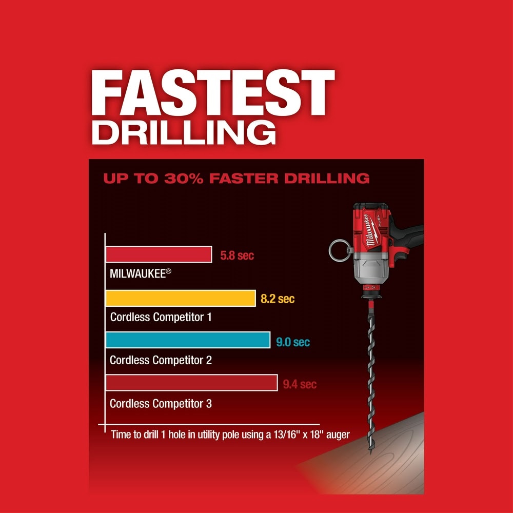 The M18 FUEL™ 7/16" Hex Utility High Torque Impact Wrench w/ ONE-KEY™ delivers the Fastest Drilling Speed, More Power, and is Built for Maximum Control. The POWERSTATE™ Brushless Motor and all-new mechanism provide linemen with 30% faster drilling speed, increasing productivity on the job. With up to 750ft-lbs max torque, this impact delivers more power for effortless removal of rusted or corroded hardware. It’s ergonomically designed for the lineman, providing superior control whether in-bucket, on-ground or climbing. The extended handle offers increased grip surface, perfectly fitting high voltage safety gloves for improved comfort, less fatigue, and balanced maneuverability. This is the first 7/16" impact in the industry to be equipped with a QUIK-LOK™ chuck, uniquely providing faster and easier bit changes. Linemen can keep one hand firmly on the tool’s handle while inserting augers, sockets and other essential accessories. The integrated lanyard loop allows for transfer and storage. REDLINK PLUS™ Intelligence ensures maximum performance and protects from overloads, heating and over-discharge. The REDLITHIUM™ Battery Pack (not included on bare tool) is compatible with 175+ M18™ tools, delivers more work per charge and more work over the life of the pack than competitors. With ONE-KEY™, you also gain the ability to Customize, Track and Manage your utility impact. ONE-KEY™ technology also allows you to save up to 4 task settings directly to the tool. If your tool is ever lost or stolen, its tracking functionality can lock it out to protect your investment.