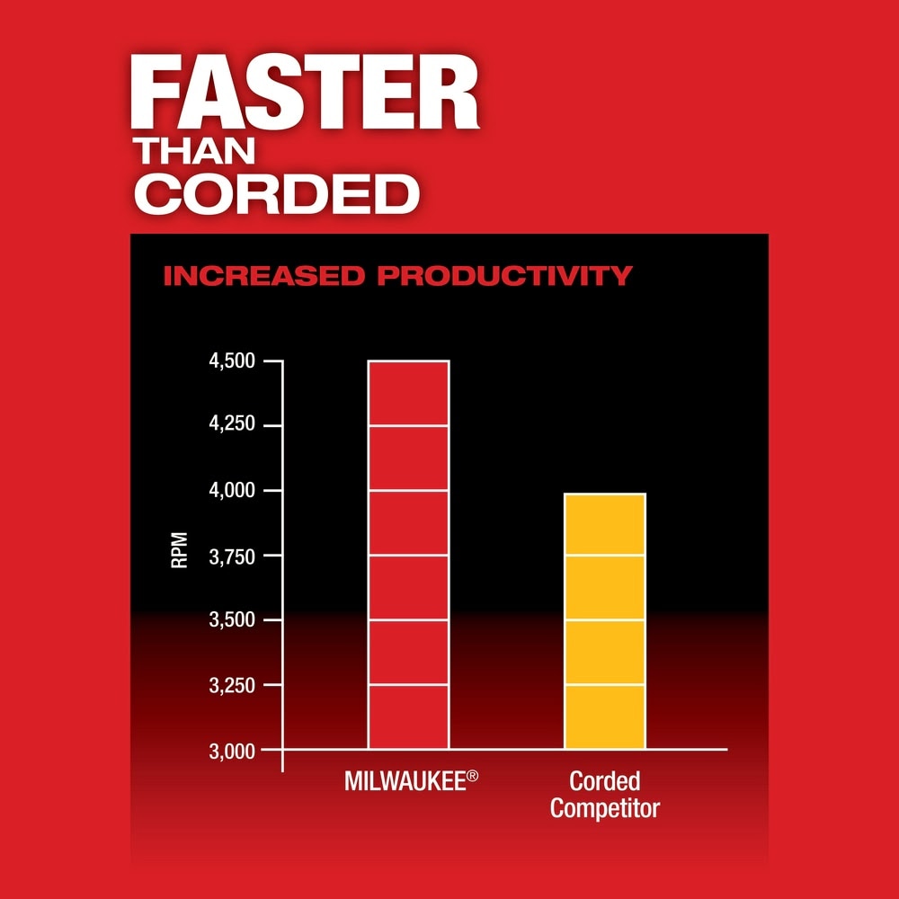 - POWERSTATE™ Brushless Motor delivers 4,500 RPM's to provide FASTER THAN Corded productivity