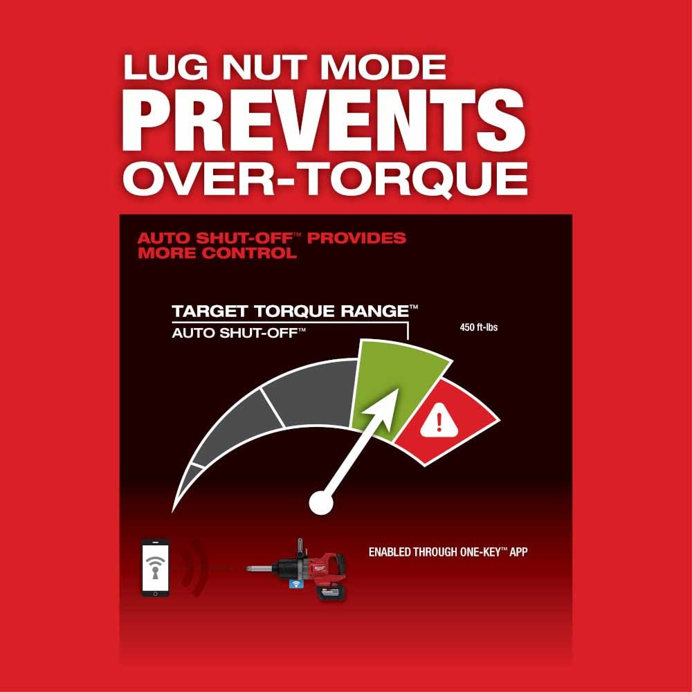- ONE-KEY enabled Lug Nut Mode Prevents Over-Torque and More Control through Auto Shut-Off