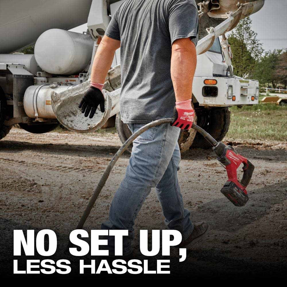 - The MILWAUKEE® M18 FUEL™ 8 ft Concrete Pencil Vibrator generates up to 1.8 peak HP, with no setup and the ability to consolidate 20 yds³ of concrete per charge. The M18 FUEL™ 8 ft Concrete Pencil Vibrator generates 1.8 Peak HP, which is three times more powerful than competitive cordless pencil vibrators for concrete, all on the M18™ Cordless System. The POWERSTATE™ Brushless Motor delivers maximum sustained power and 12,500 VPM for optimal consolidation with a variable speed trigger. REDLINK PLUS™ Intelligence ensures unmatched levels of performance and protection. The M18™ REDLITHIUM™ HIGH OUTPUT™ XC6.0 Batteries (not included) deliver 50% more power while running 50% cooler than M18™ REDLITHIUM™ XC Batteries and are compatible with 200+ tools in the M18™ System.