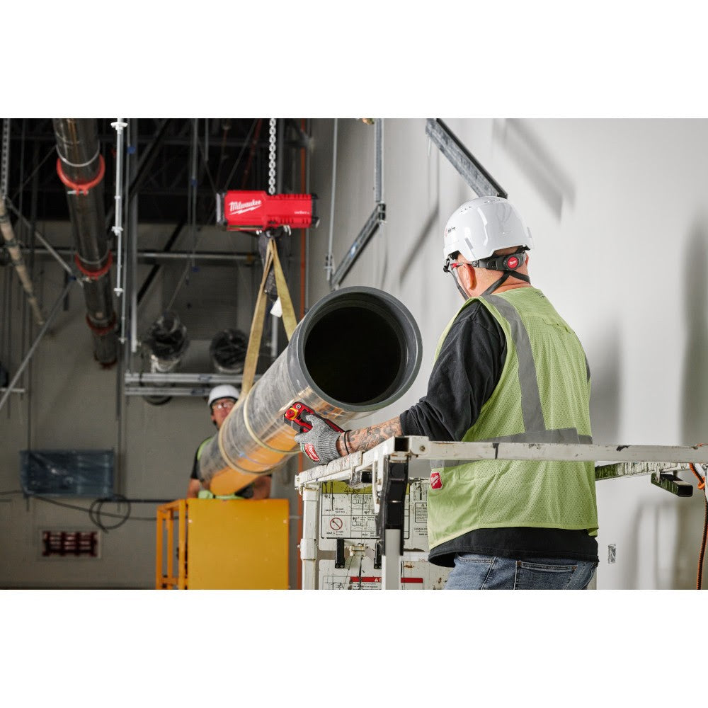 The MILWAUKEE® M18™ COMPACT 1-TON CHAIN HOIST W/ ONE-KEY™ brings innovation into the Material Handling Category, designed to give users Effortless Installs, Less Down Time, and Improved Mobility. Powered by M18™ REDLITHIUM™ Batteries, our solution eliminates the time needed to set up extension cords to power hoists onsite. The Kitted wireless remote delivers enhanced control in each lift. Equipped with 60ft of remote range, variable speed, and fine adjustment users gain more visibility and accurate installs. With a 46lb compact, lightweight design, and kitted PACKOUT™ Rolling Cart, the Chain Hoist gives users the ability to more efficiently move around site. Designed to lift in both inverted and standard orientations, the hoist increases material lifting versatility while decreasing onsite strain.