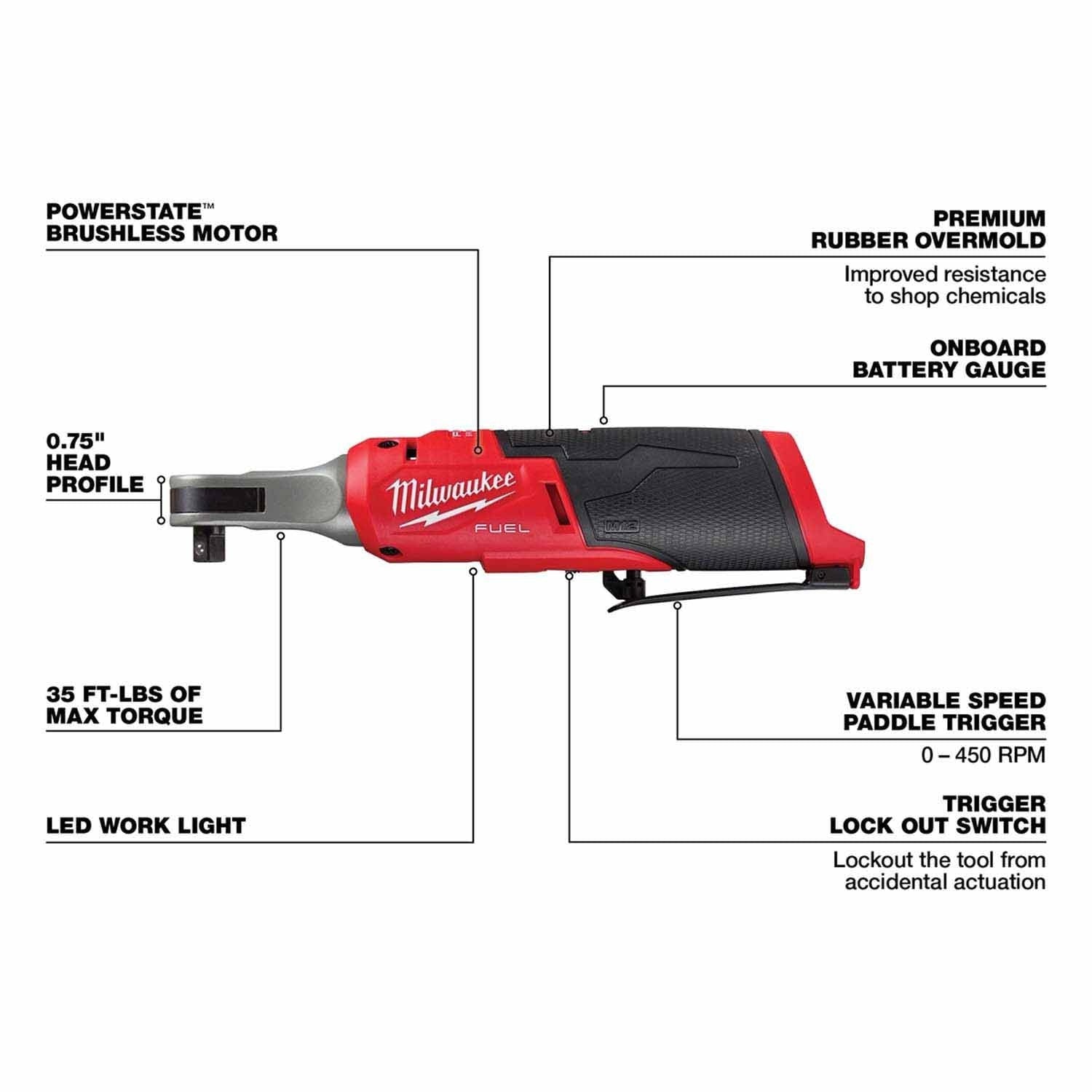 - Fastest cordless ratchet with compact 0.75 in. head profile