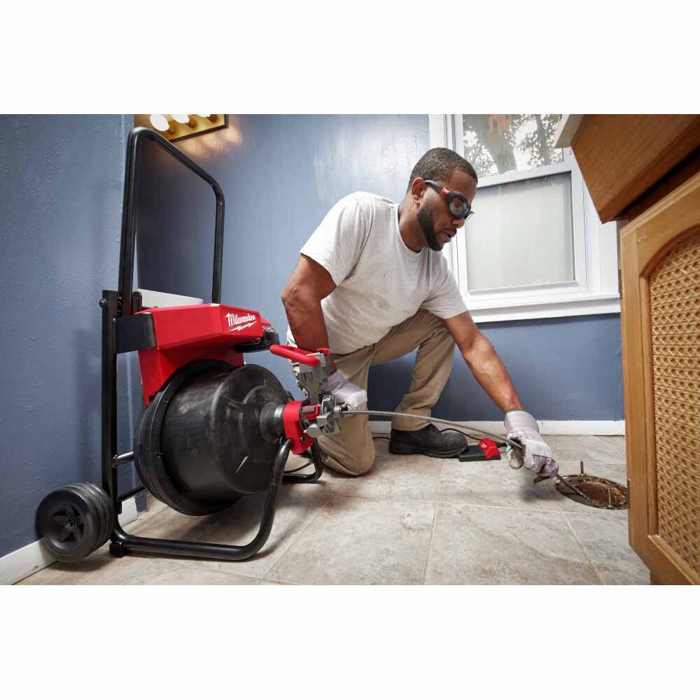 The MILWAUKEE® CABLE DRIVE™ Assembly for the M18™ Drum Machine (48-53-2816) provides you with the ability to automatically feed and retract cables through 1-1/4” to 4” lines at up to 15-20 feet per minute. The ratcheting lever automatically adjusts for the MILWAUKEE® 3/8" and 1/2" inner core drain cleaning cables. The RAPID STOP™ release of the steel bearings provides a quick way to release the cable once the blockage is reached, preventing the cable from binding. The twist-lock feature allows the CABLE DRIVE™ Assembly to be easily swapped between your drums for maximum efficiency.