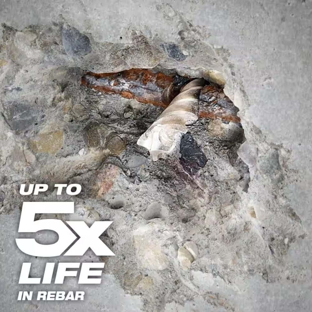 - Solid head carbide for up to 5x longer life in concrete with rebar